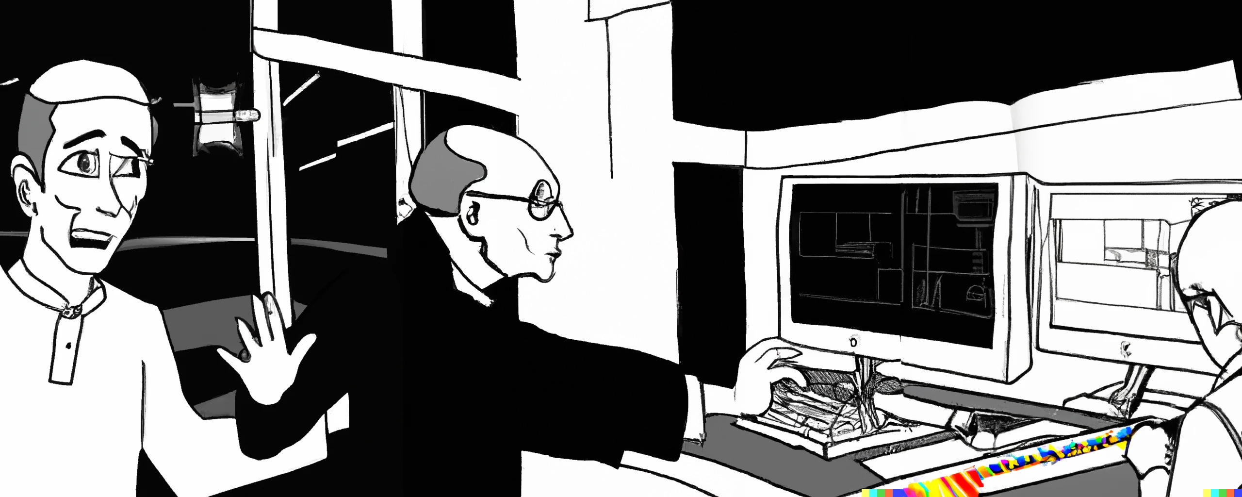 A black and white painting of Le Corbusier using Autocad generated by Dall-e.
