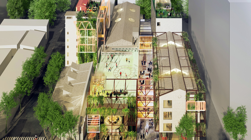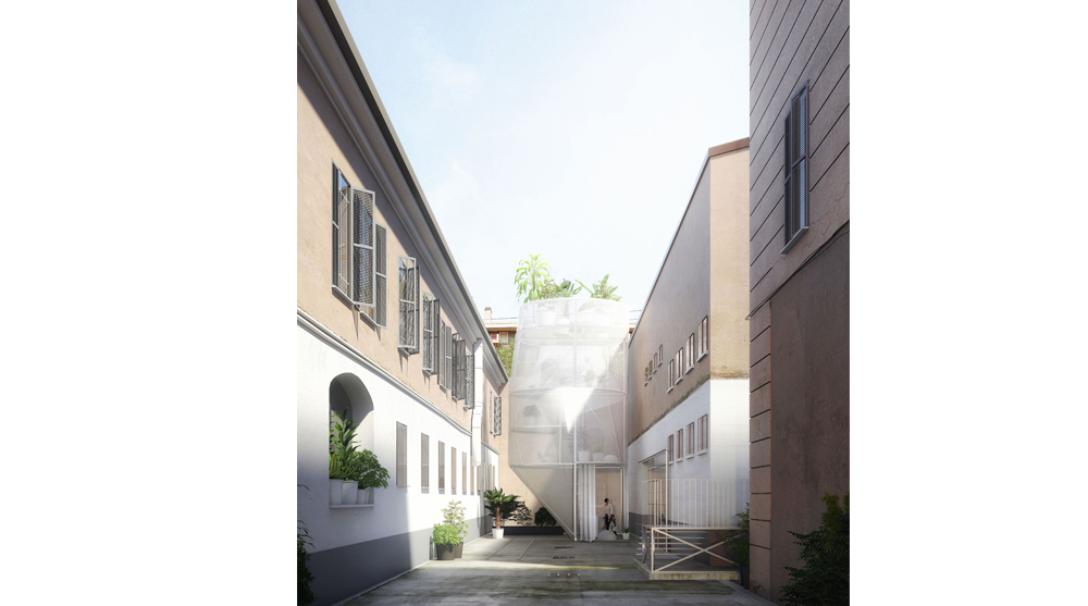 The design for a co-living building in Shanghai, where an unused industrial complex is being transformed into apartments, offices and leisure spaces. @MINI Living