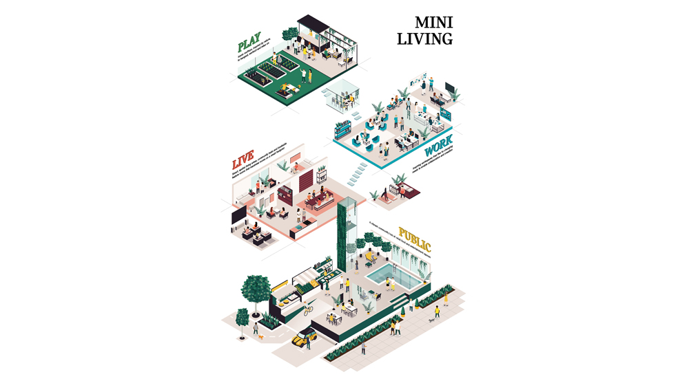 I imagine the city of the future as a network of spaces you turn into a network of places for your personal use. A network of shared spaces enabling people to meet, to connect and to build engaging communities. MINI LIVING is all about blurring the boundaries between public and private to activate hidden spatial potentials within the urban realm. We embrace a city of open buildings, that are permeable, shared and foster inspiration by bringing people together.