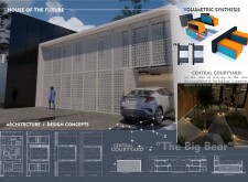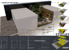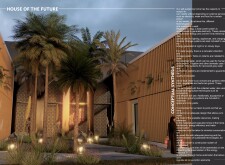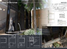 Located in an unspecified arid climate, the House of the Future presents a forward-thinking approach to sustainable living through the integration of advanced technologies and environmentally considerate design principles. The intent is to create a self-sufficient residence that minimizes reliance on conventional utilities, employing innovative strategies for energy, water, and food supply within its architectural framework.