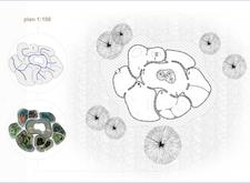 The architectural design features an organic layout characterized by curvilinear pathways and varied spatial arrangements that facilitate exploration and interaction. Central to the design is a spirally structured open space, promoting connectivity among the diverse functions of the house and its surrounding gardens. Well-planned pathways encourage easy movement between indoor and outdoor environments, minimizing hard edges and fostering fluid transitions that enhance user experience.