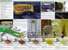 The Pushkinsky Cinema project is located in Moscow, Russia, and focuses on the integration of historical significance with modern design principles. The intent is to revitalize the Pushkinsky Cinema as a cultural landmark while incorporating sustainable practices and innovative technologies. This architecture aims to create a vibrant space that enhances user interaction and fosters a connection with the surrounding urban environment.