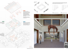 Public areas are designed to be open and inviting, including an entry hall and exhibition spaces that promote accessibility. Attention to detail enhances interactions within the museum. The design fosters connections between visitors and the surrounding environment, enriching the experience of both cultural heritage and community engagement.