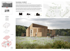 The Omuli Museum of the Horse is a cultural venue located in Omuli, Latvia, that repurposes the old Omuli school. The design aims to keep the historical essence of the building while introducing new features that benefit both the local community and visitors. The overall concept revolves around sustainability, cultural preservation, and encouraging connections among users.