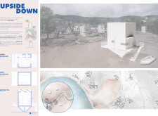 Located in an area susceptible to flooding, "Upside Down" presents an innovative approach to residential architecture that prioritizes adaptability and self-sufficiency. The design addresses climate-related challenges by reconfiguring traditional aspects of home layouts, allowing for enhanced resilience against environmental emergencies. By elevating the ground floor while repurposing the roof as a functional living space, the project offers a practical solution to sustainable living in a changing climate.