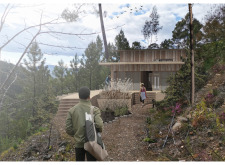 The layout of Babos House is divided into two main sections, each serving different purposes. The lower area contains the reception and sanitary facilities, essential for welcoming visitors and providing necessary amenities. In contrast, the upper section is dedicated solely to yoga and meditation. This separation creates distinct spaces; one encourages social engagement while the other aims for personal reflection, using the peaceful views of the valley to enhance the experience.