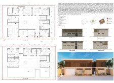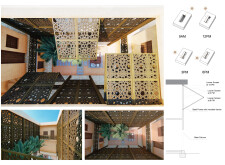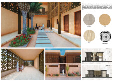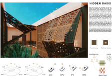 The Hidden Oasis residential design is located in Dubai, UAE, and aims to harmonize modern architectural concepts with traditional influences. Positioned within a rapidly developing urban context, the design focuses on addressing contemporary living challenges, particularly sustainability, social connectivity, and climate adaptation. The project emphasizes the role of courtyards, which are central to the layout, by reinterpreting their significance in fostering social interactions and enhancing environmental performance.