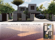 The House of the Future, situated in the United Arab Emirates, reflects a synthesis of modern architectural principles and traditional Arab aesthetics. Designed for families of 4 to 6 members, the project prioritizes sustainability, drawing from both innovative technologies and ancestral knowledge. The intent is to create a dwelling that respects cultural heritage while addressing contemporary requirements through a thoughtful integration of bioclimatic resources and eco-friendly practices.