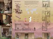 Energy efficiency is a key aspect of the design. The flat roof is equipped with solar panels for generating renewable energy on the site. Additionally, a rainwater collection system, utilizing a tank made from mud bricks located under the microhouse, showcases an effort to conserve resources. This approach reduces reliance on external water sources and demonstrates a commitment to environmentally friendly practices.