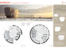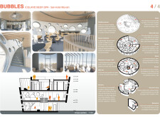 A central atrium serves as a connective core, facilitating vertical movement within the building and reinforcing the circular design. The accompanying circular staircase enhances flow between spaces while echoing the organic themes throughout. By merging the concepts of a beer spa with wellness retreats, this project distinguishes itself from conventional hotel and spa designs. Its architectural strategy draws inspiration from local geological elements, establishing a narrative that resonates with Iceland's natural features and crafting a unique identity for the facility.