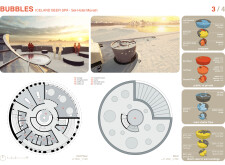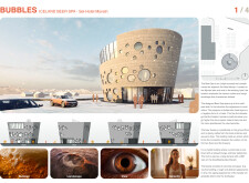 The structural envelope features a combination of raw concrete and expansive glass, optimizing durability while enhancing transparency through natural light and expansive views. This material choice fosters an earthy atmosphere, harmonizing with the serene environment. A unique perforated façade incorporates circular openings reminiscent of bubbles, creating playful interactions of light and shadow. This design feature also aids in temperature regulation and ventilation.