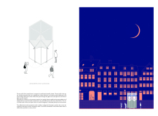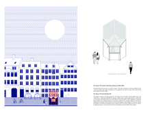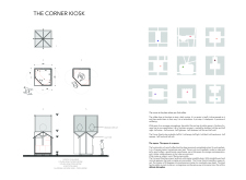The Corner Kiosk is a coffee service structure situated in urban environments, designed to function as a social hub that facilitates community interaction. It is positioned at prominent corners, maximizing visibility and accessibility to encourage spontaneous social gatherings and daily routines, particularly around coffee consumption. The design embodies the concept of the corner as a vital space in city life, attracting individuals and enhancing community engagement.