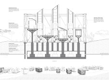 The material palette for the Ghaf Tree House is carefully chosen to balance functionality with aesthetic considerations. The exterior cladding employs high-density polyethylene (HDPE) fabric for its lightweight properties and UV protection, while a bolted galvanized steel framework provides structural integrity and facilitates engagement with the environment. Concrete floors and foundations ensure a solid yet flexible base, addressing local environmental challenges. Furthermore, the corrugated Zincalume roof resonates with traditional Arab architectural forms while providing necessary shelter. The design incorporates innovative environmental strategies such as locally sourced materials and a water collection system based on the "Qanat" irrigation method, reflecting a commitment to sustainability and cultural relevance.