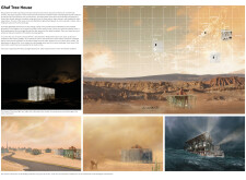 The Ghaf Tree House is situated in the United Arab Emirates, designed to address the distinct climatic and cultural requirements of the region. This architectural design concept merges traditional elements with contemporary family dynamics, focusing on sustainability, adaptability, and a strong relationship with the natural environment. The intention is to create a multifunctional residential space that interacts effectively with its surroundings.