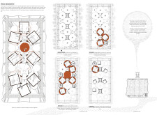The spatial organization of the Ghaf Tree House features adaptive elements that allow for the configuration of living spaces to meet varying user needs. Piston columns, which act as hydraulic lifters, enable vertical movement to reposition rooms based on functions, whether for social gatherings or privacy. Additionally, rotating floor slabs allow for dynamic spatial arrangements, fostering versatility in response to family dynamics or environmental conditions.