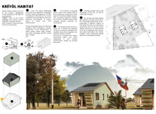 The Kréyòl Habitat is located in Haiti and addresses the country's ecological and infrastructural challenges through a thoughtful architectural design. The project emphasizes sustainability and cultural preservation while aiming to improve community well-being. "Kréyòl," inspired by Haitian identity, highlights the importance of cultural expression within modern living environments, while "Habitat" signifies a contemporary approach to dwelling.