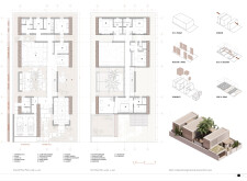 The layout includes a central courtyard that facilitates cross-ventilation and serves as a communal outdoor space. Surrounding this courtyard are interconnected compartments that transition from more public areas at the front to private chambers at the back and upper levels, accommodating varying degrees of openness. This design offers a nuanced flow of movement, catering to diverse family dynamics while maintaining a harmonious balance between interaction and solitude.
