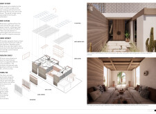 Located in Dubai, the design emphasizes a synthesis of traditional elements with contemporary sustainability practices, addressing the unique climatic and social context of the region. The project is organized into three interconnected compartments, each serving distinct functions that balance public interaction and private retreat. This architectural approach reflects both cultural heritage and modern innovation, resulting in a living space that adheres to the environmental and social norms of Dubai.
