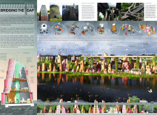 The "Bridging the Gap" project is strategically situated in the UK, addressing urgent issues surrounding homelessness and socio-economic disparities within urban settings. The initiative aims to provide not just shelter, but also to enhance community engagement through a sustainable housing framework that empowers individuals through a self-build model. By focusing on both the need for affordable housing and environmental responsibility, this design seeks to reclaim agency for residents while confronting waste management challenges.