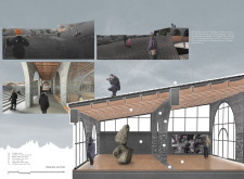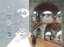 The layout inside the center uses a series of arches and distinct layers that contribute to both structure and function. These arches serve to create openings while guiding visitors through different areas. The carefully designed flow encourages movement and exploration, linking various vantage points where guests can admire the unique geology both from inside and outside the building.
