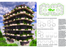 The design fosters connections among residents through the arrangement of microhomes around communal courtyards linked by vertical cores. This setup encourages social interaction and helps build a sense of community. By clustering the homes, it promotes direct contact between neighbors, reinforcing bonds and engagement among those living in the settlement.