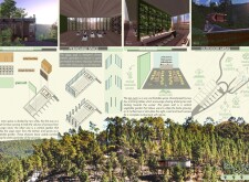 The design integrates individual and communal spaces in a way that encourages a connection to nature. Situated in a serene environment, the project focuses on wellness and relaxation, with features that promote both personal reflection and social interaction. The overall design concept centers on the relationship between the built environment and the natural landscape, expressed through open layouts and uplifting structural forms.