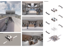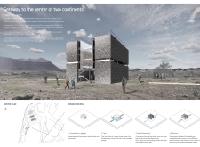 The observatory includes several viewing points that allow visitors to take in the landscape from different perspectives. This arrangement enriches the visitor's experience, enabling them to appreciate the details of the surroundings while minimizing any impact on the ecosystem. Internally, a reflective wall draws the landscape into the building, creating a strong connection between the outside world and the interior space. This design choice enhances the experience of visitors, linking them more closely to the natural environment.