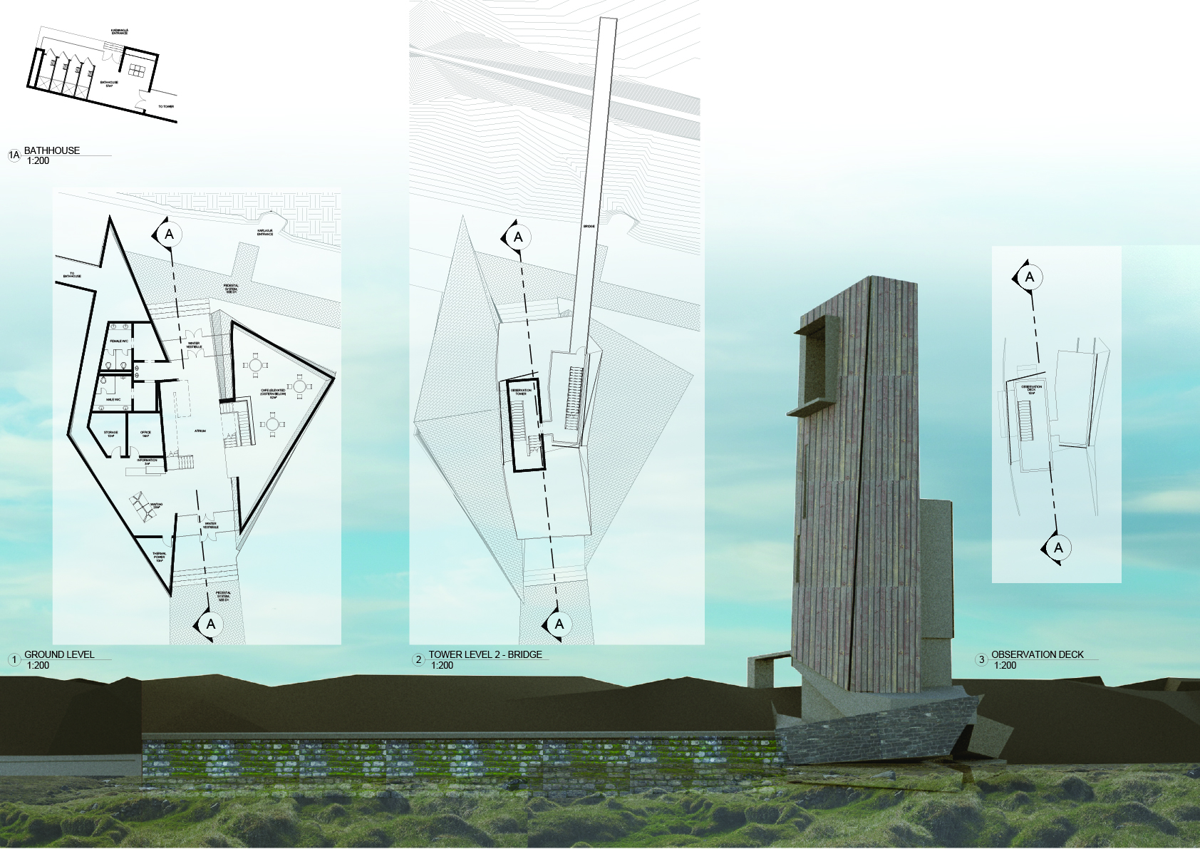 The design concludes with a visual connection between the natural and constructed worlds. The towers rise above the landscape, capturing the resilience of both nature and architecture, while inviting visitors to engage with the environment.