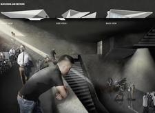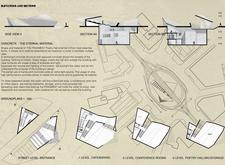 The design is organized across three distinct levels, each serving a specific function to accommodate a variety of activities. The street level features an inviting entrance leading to the main hall, complemented by communal areas such as a café and bar to encourage social interaction among visitors. The basement levels contain conference rooms and adaptable spaces suitable for formal gatherings, poetry readings, and performances. The upper levels house the central poetry hall, designed for flexible configurations that facilitate both intimate and larger events.