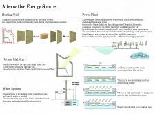 Sustainability plays a significant role in the design. Used wood pallets are the primary material throughout the retreat. This choice is practical and environmentally friendly. The structures are reinforced with durable materials that also reflect a commitment to sustainable practices. Innovative energy solutions include a heating wall that uses hay-filled pallets and a power system that captures lake water evaporation for renewable energy. Additionally, a rainwater collection system addresses water needs on-site, minimizing environmental impact.