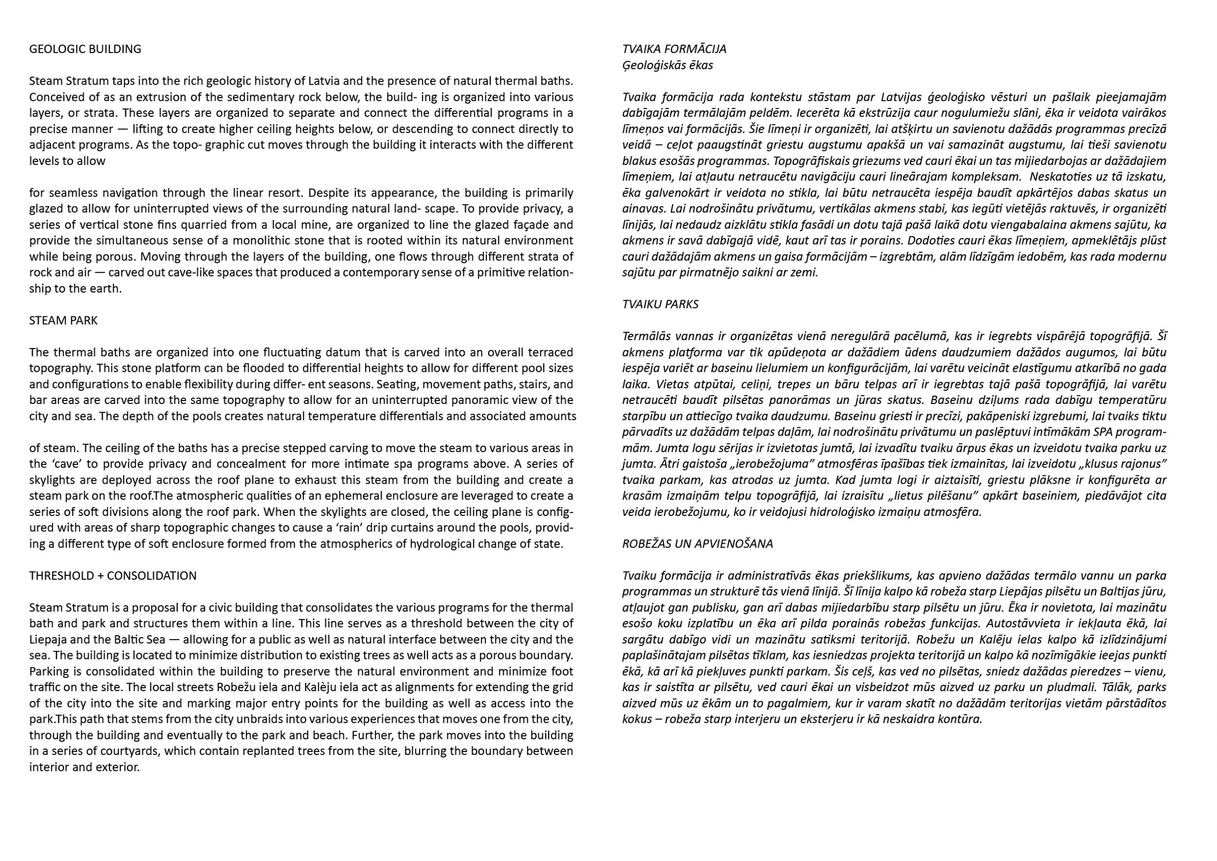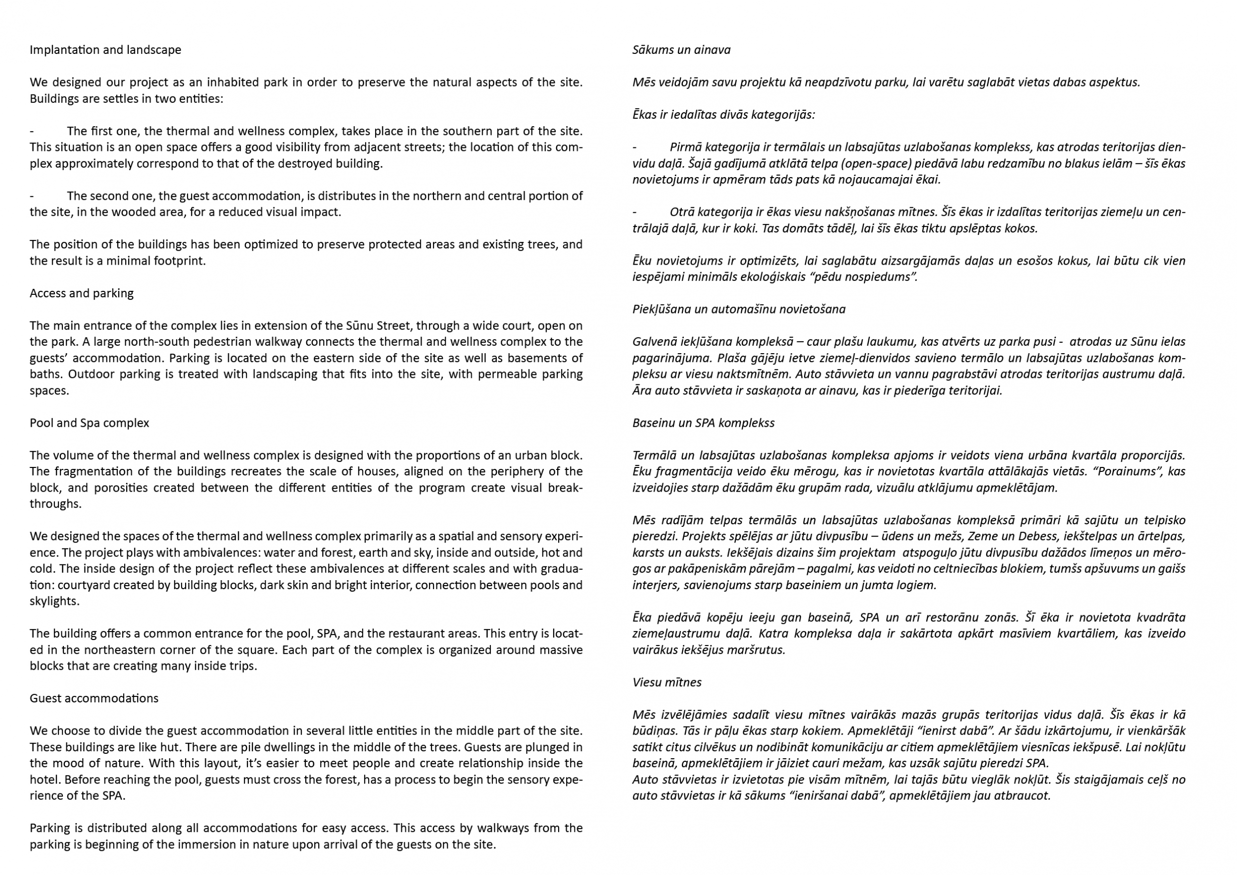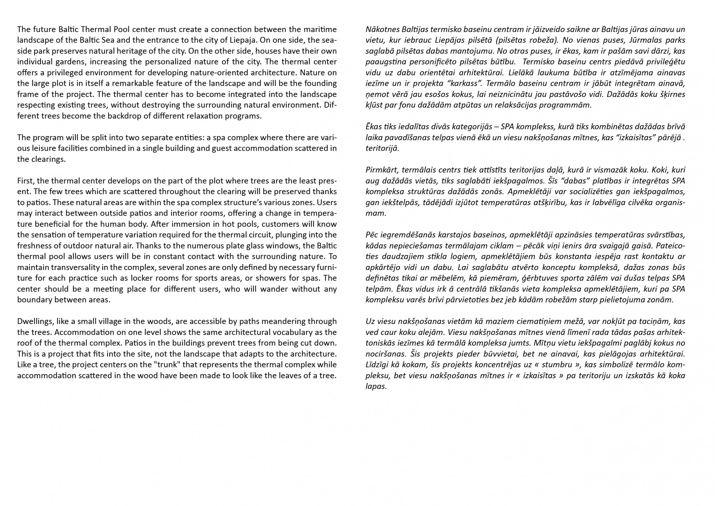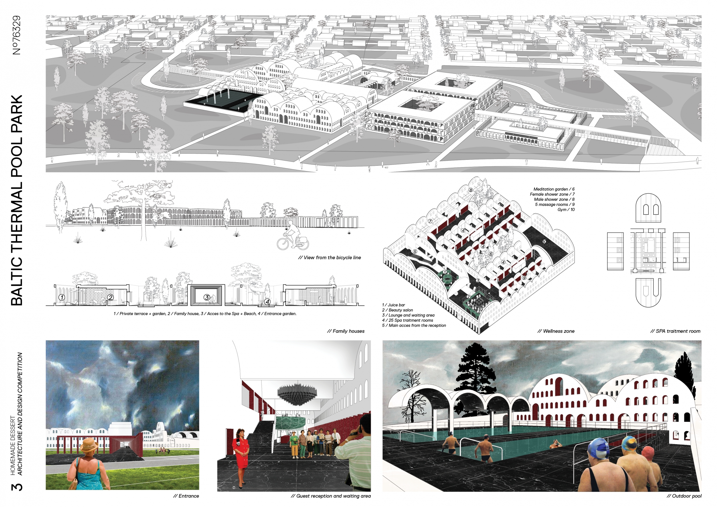 The second competition in a design series focused on Liepaja Seaside Park (Liepaja, Latvia) to be presented a vision for a new development that would consist of thermal pool park with outdoor and indoor SPA facilities. Over 90 innovative, creative and well elaborated submissions were received from all over the world; evaluation of each proposal was conducted in an ethical, professional, accurate and technically adequate manner.