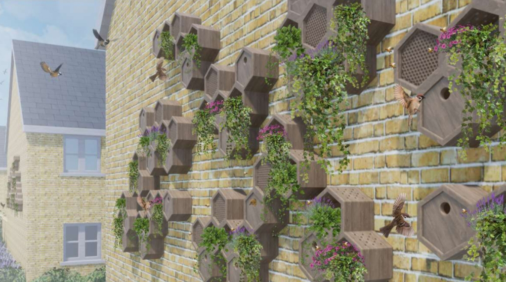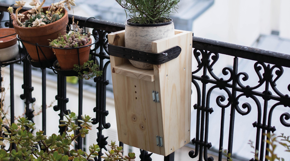 Second prize was awarded to Matthew Mudd from the UK for his Urban Bird Sanctuary, a hexagonal wooden bird home with an integrated planter. Third prize went to Xavier Bucchianeri from France for his Symbiosis, a wooden bird house with a top shelf for integrated planting, intended to be fixed to urban guardrails or balconies.