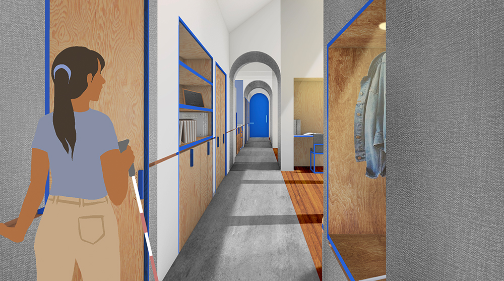 First and ARCHHIVE Student prize was awarded to students from the Yale School of Architecture in the USA - Claire Hicks, Joshua Tan, and Christina Zhang. The Guiding Wall project offers a nuanced design approach that doesn’t solely rely on the guiding wall for differentiation of the spaces but caters to multiple senses at once in order to signal the transition of one space to the other and uniquely characterize each space.