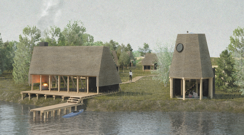 Second prize was awarded to Clara Copiglia from the USA, who conceived a collection of cabins with thatched roofs, built and designed using local vernacular practices, for her ‘It Takes a Village’ project. Third prize went to Alfonso Di Sabato from Switzerland who created A Series of Rooms’ that strings a network of sleeping spaces along a linear volume, connected under the same roof as a single building.