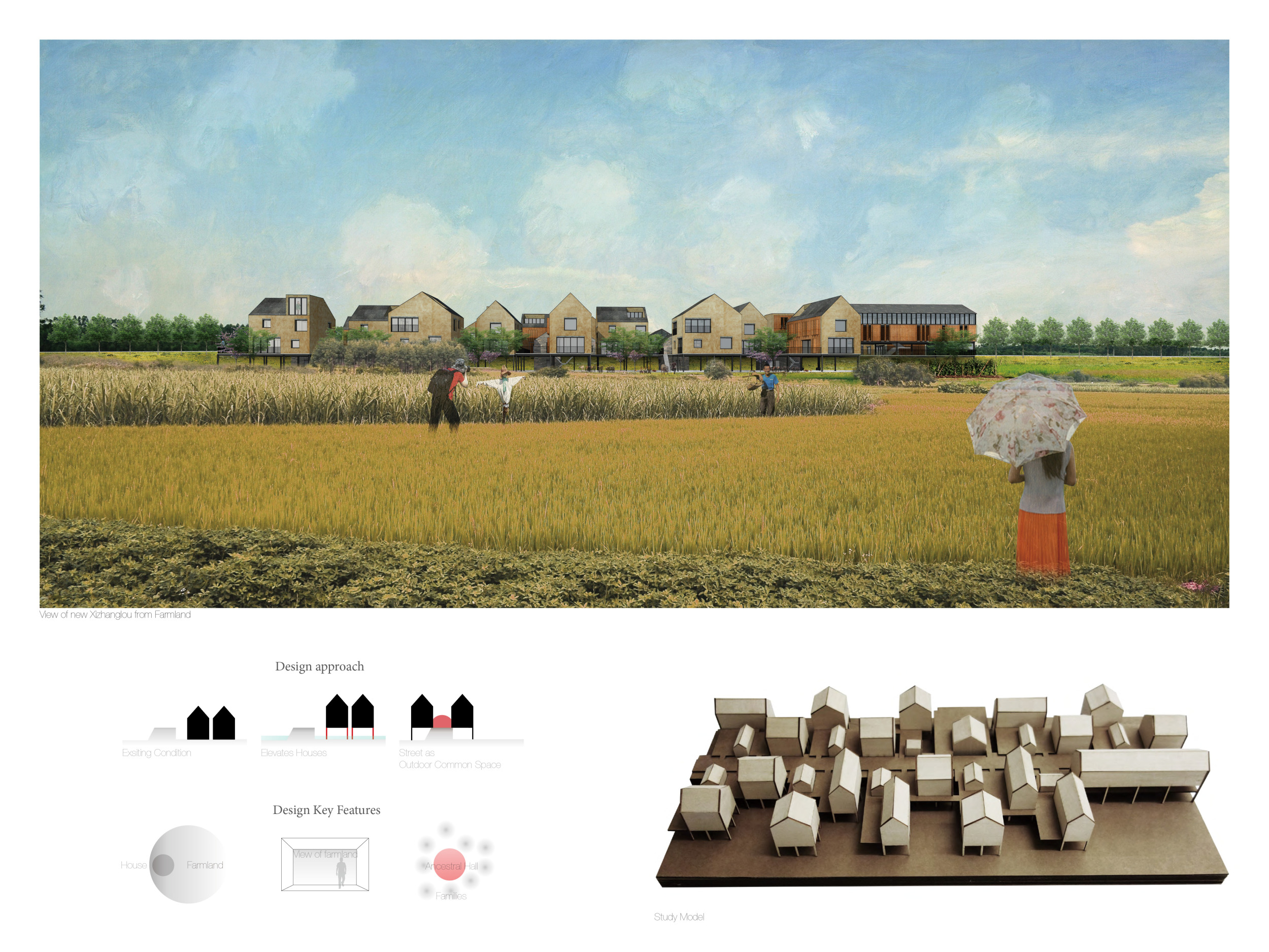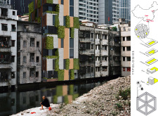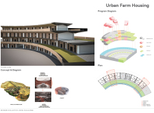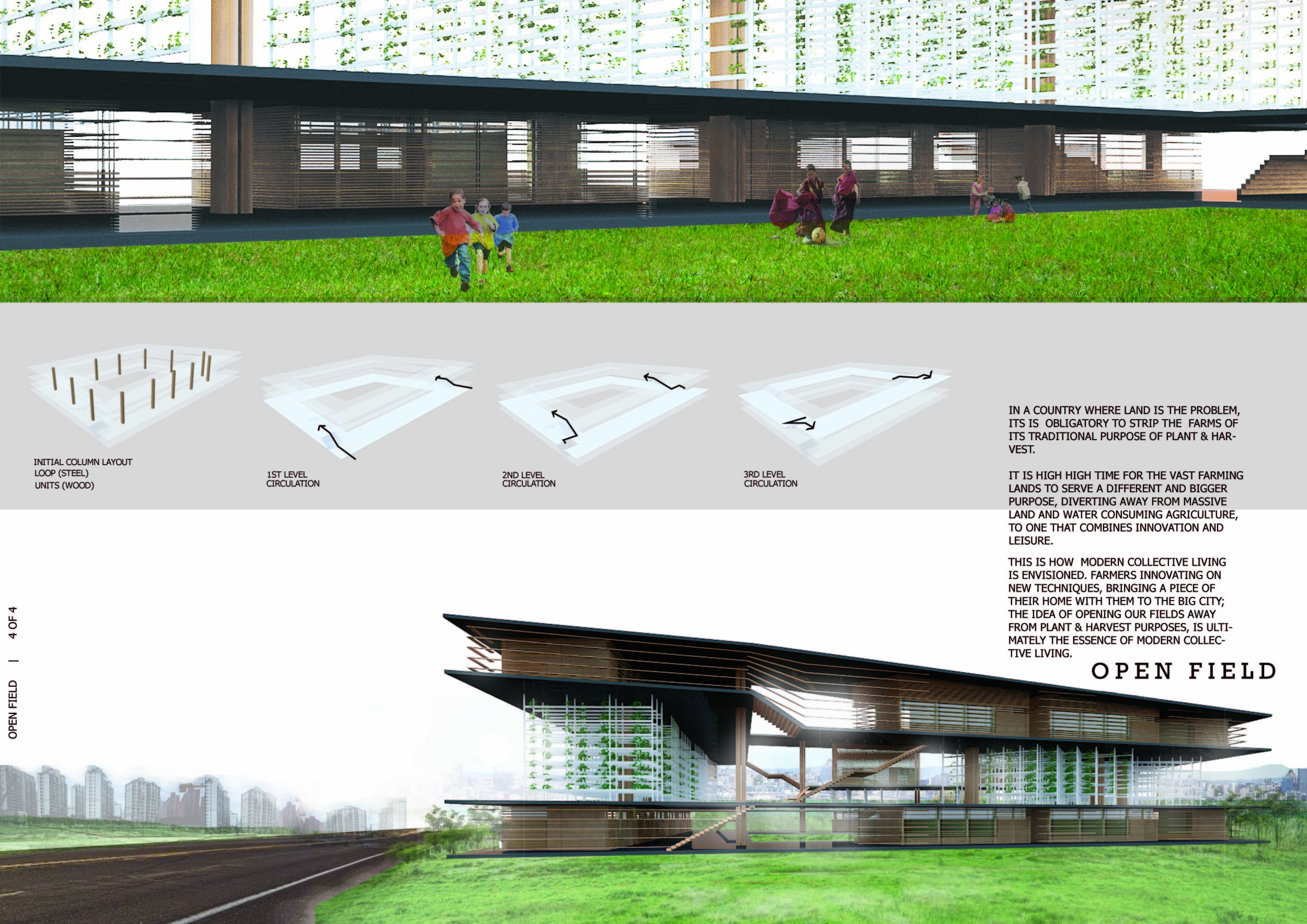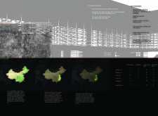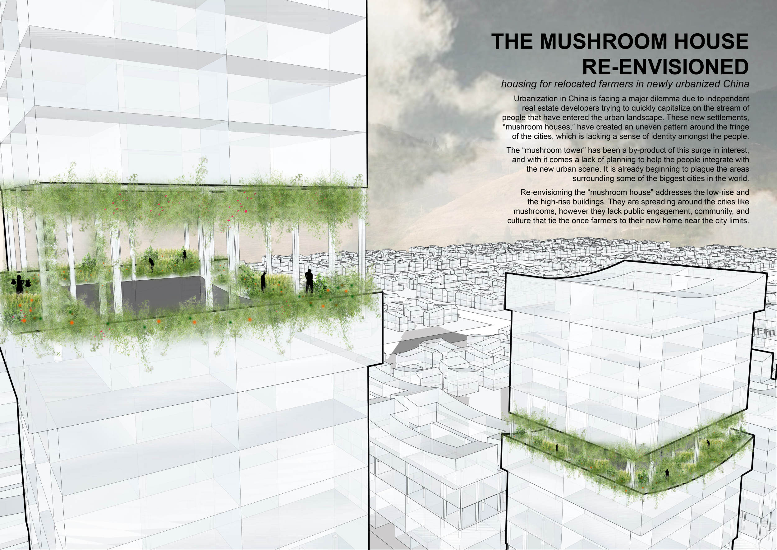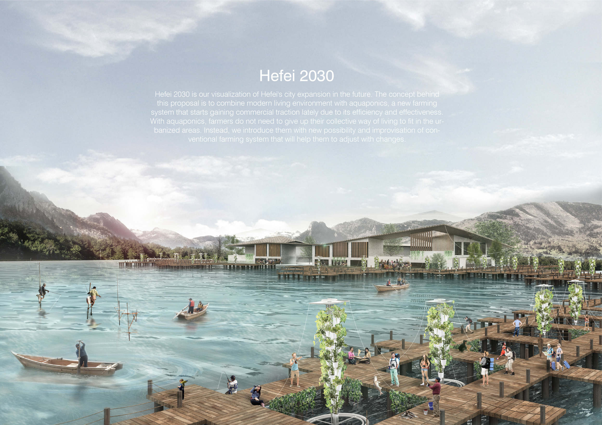 The Community of Farmers Hive presents an environmentally-conscious solution to the relocation of rural farmers to urban cities in China. The Hive is conceptualised as vertically-stacked agricultural plots within cities centres that not only provide communal housing, but also help to grow the green skeleton of the city and act to reduce the effects of heavy pollution.