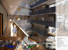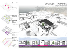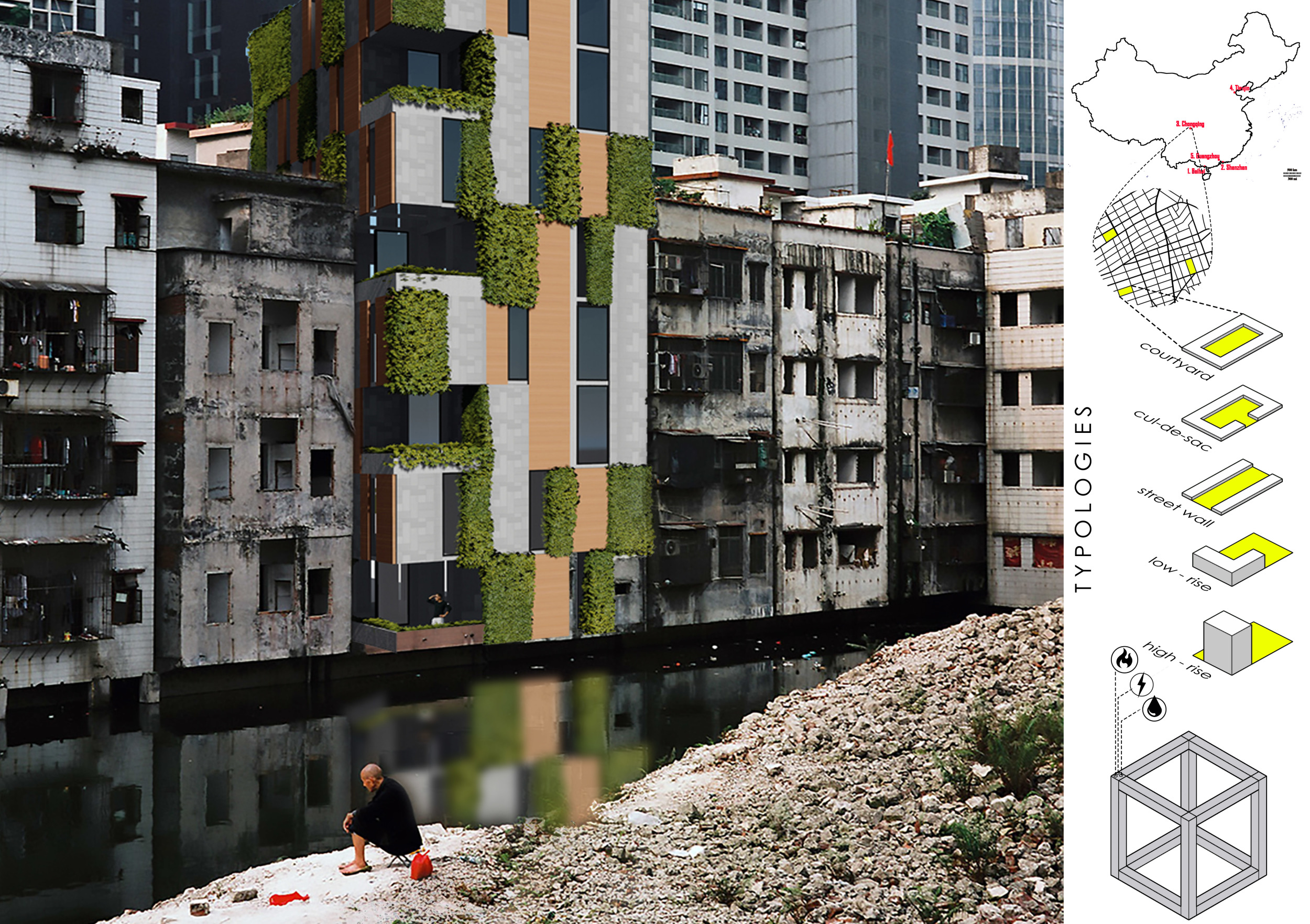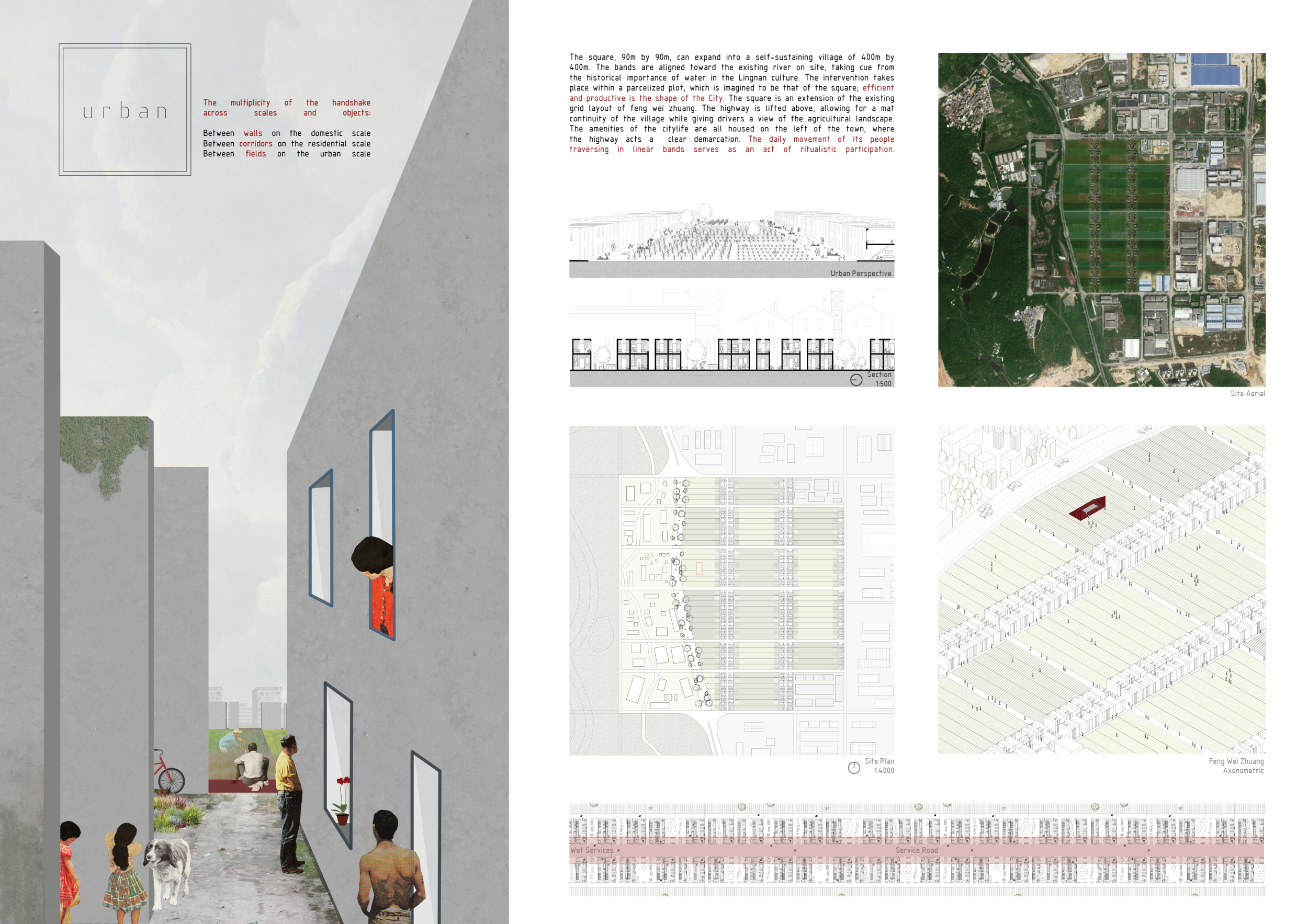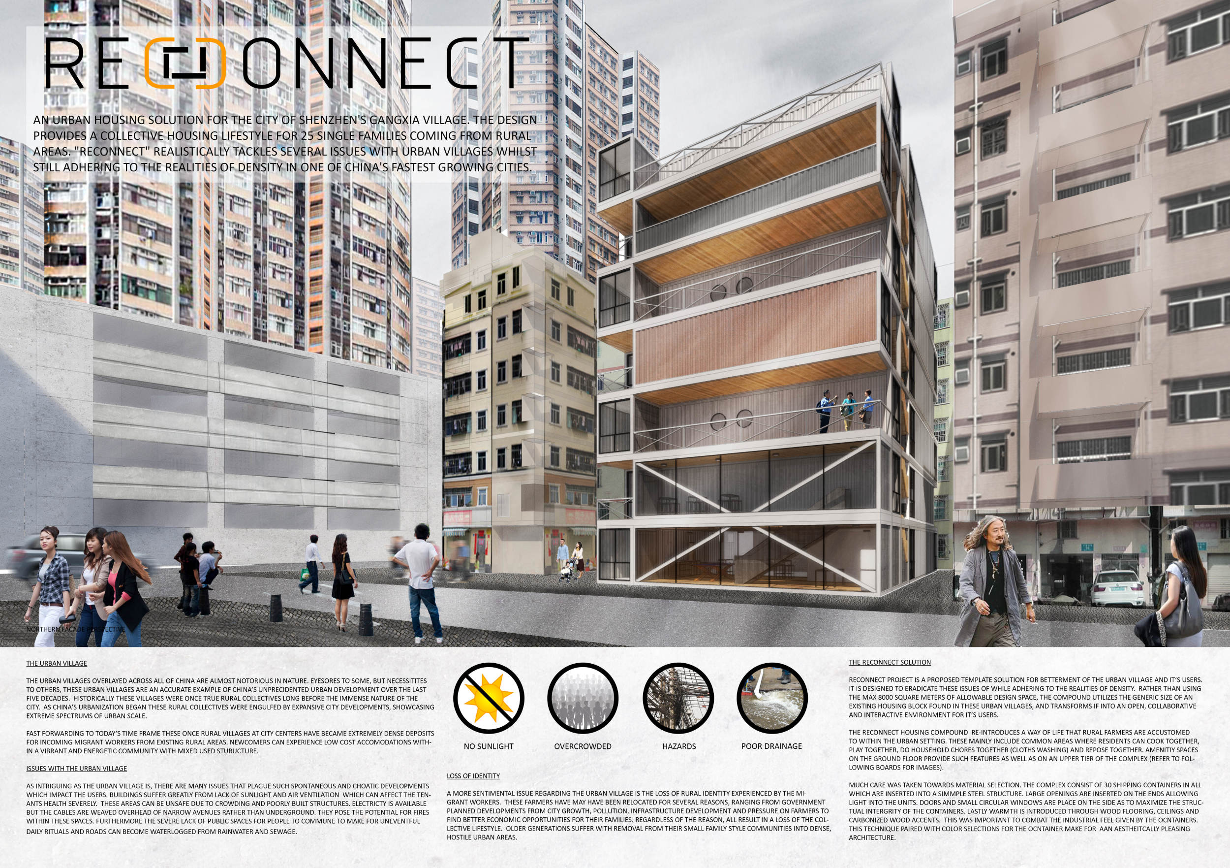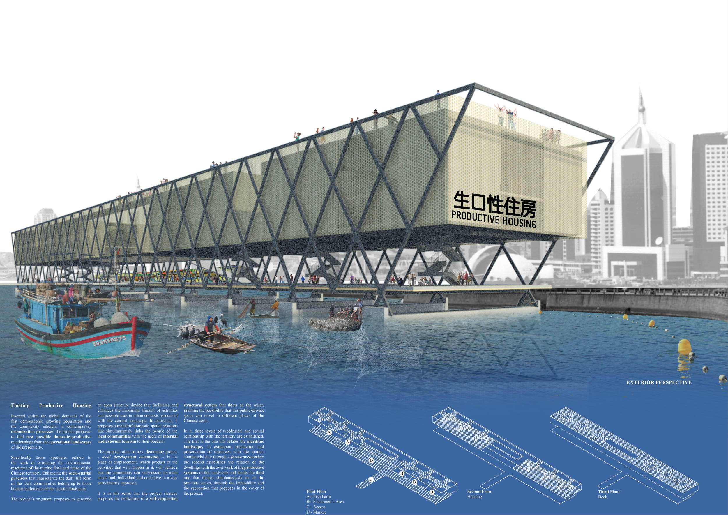 The Community of Farmers Hive presents an environmentally-conscious solution to the relocation of rural farmers to urban cities in China. The Hive is conceptualised as vertically-stacked agricultural plots within cities centres that not only provide communal housing, but also help to grow the green skeleton of the city and act to reduce the effects of heavy pollution.