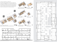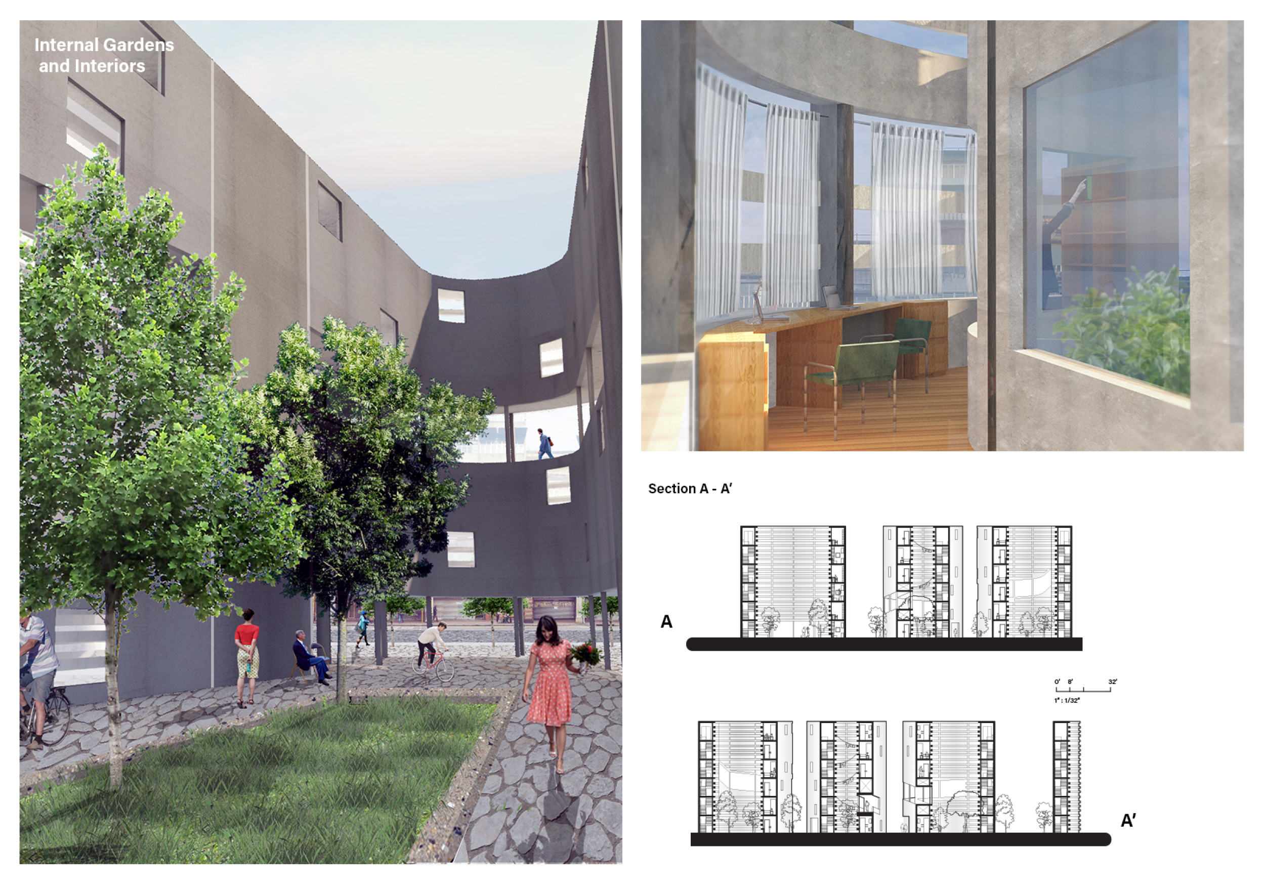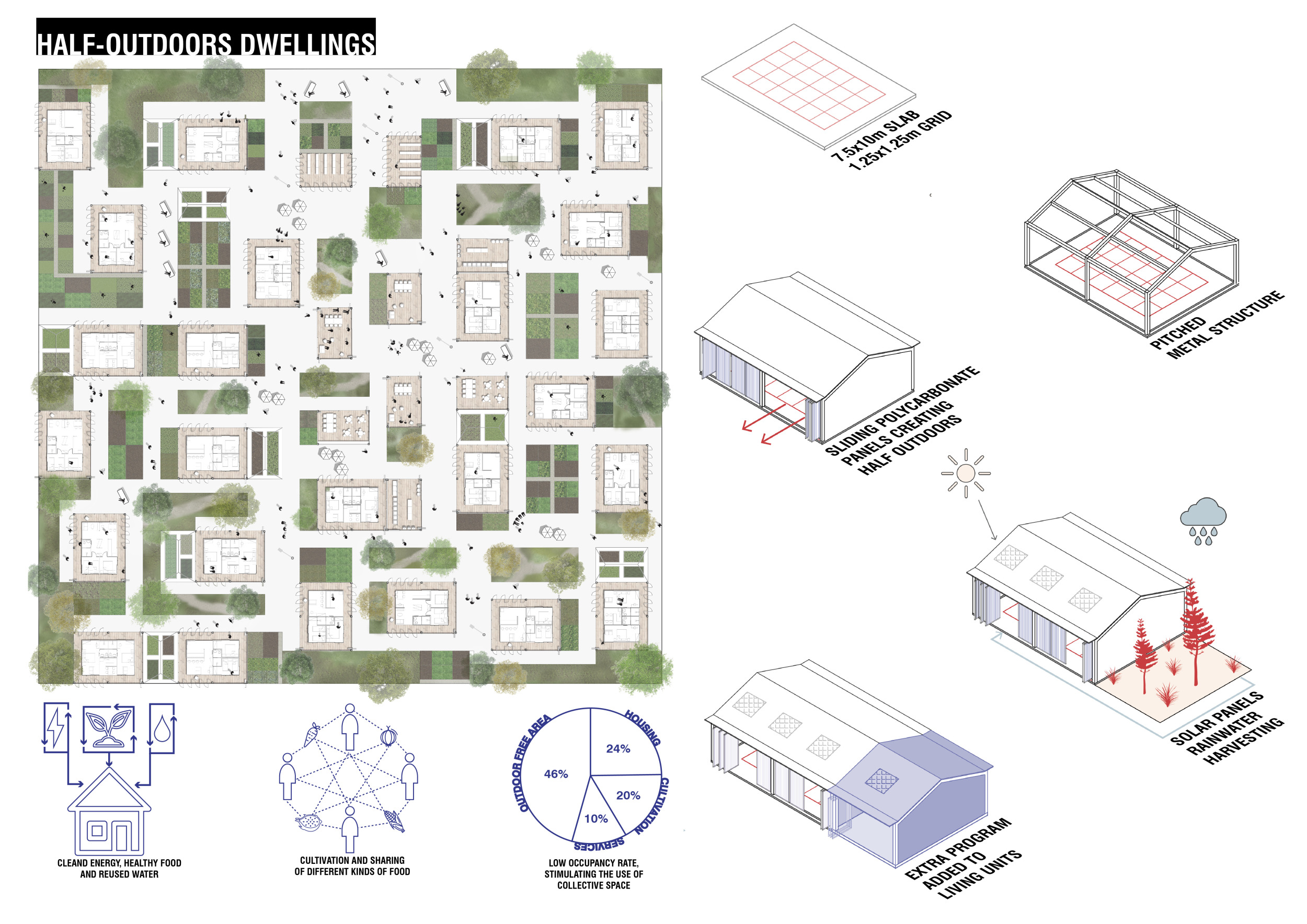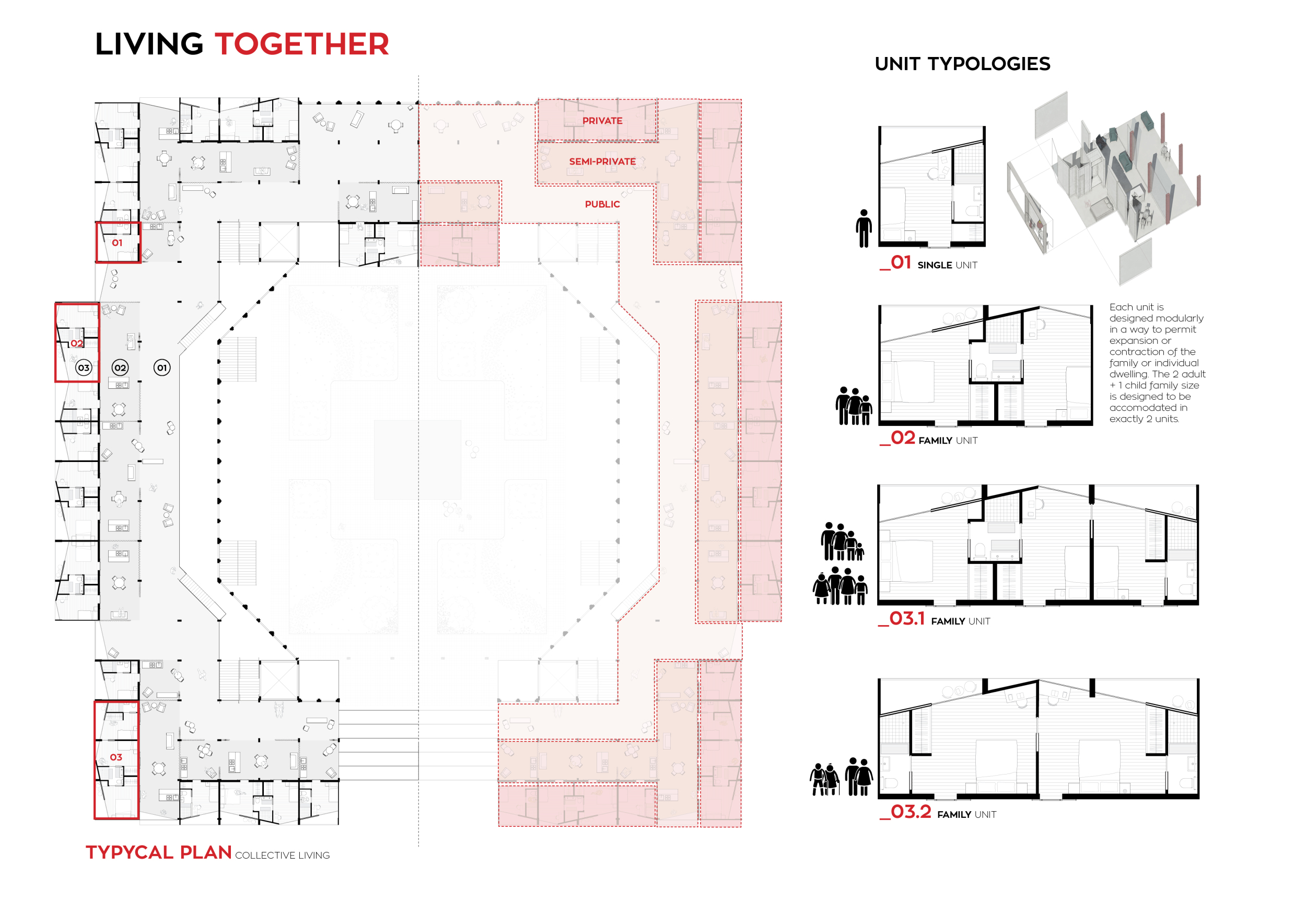 Based on the grid system, the Community of Farmers Hive is also incredibly flexible and adaptable, and can be reconfigured as needed to suit different locations and situations. Its concept creatively tackles several problems, not just the relocation of rural community farmers, but also improving environmental standards and availability of fresh food to urban communities.