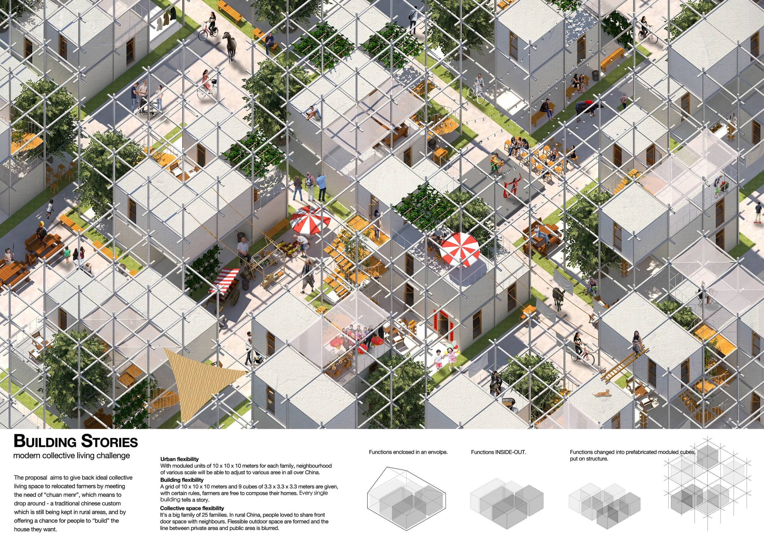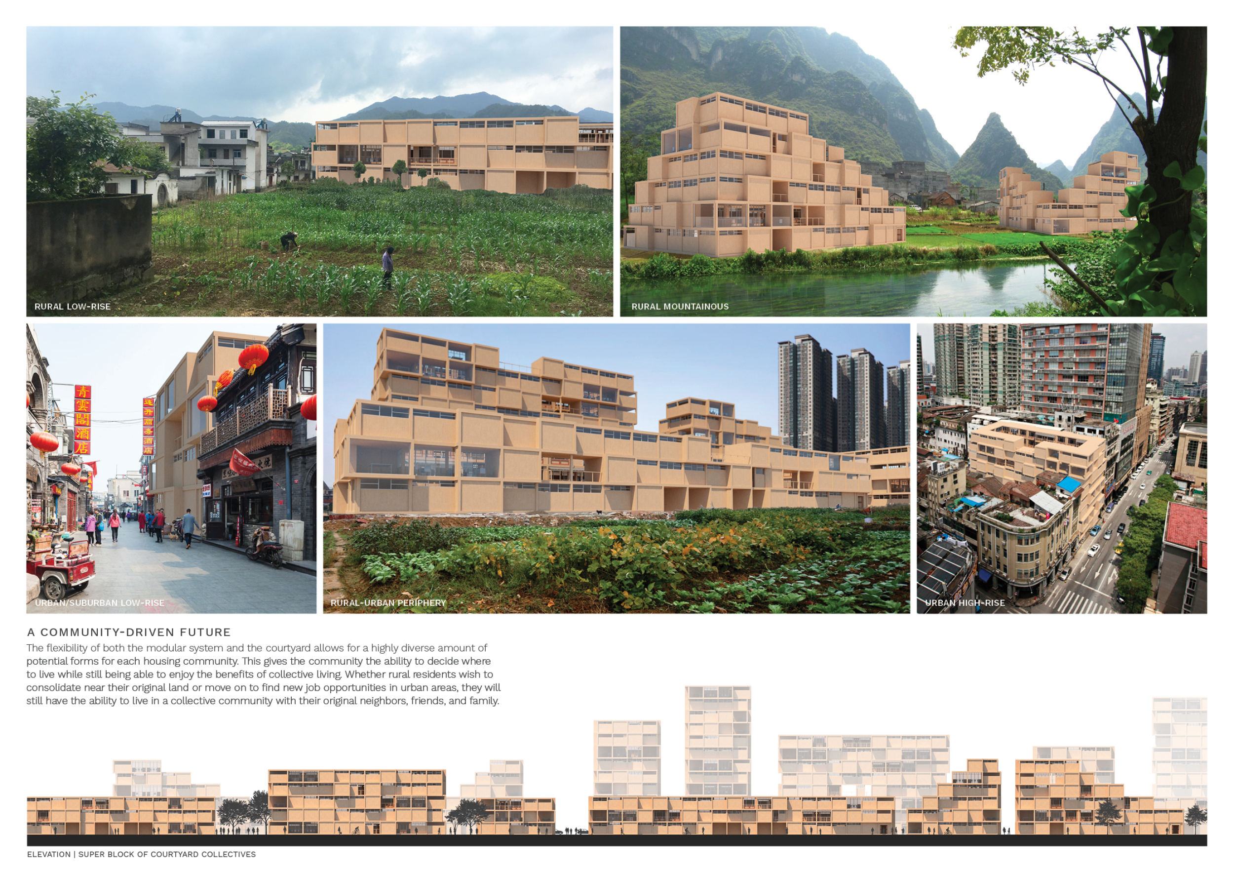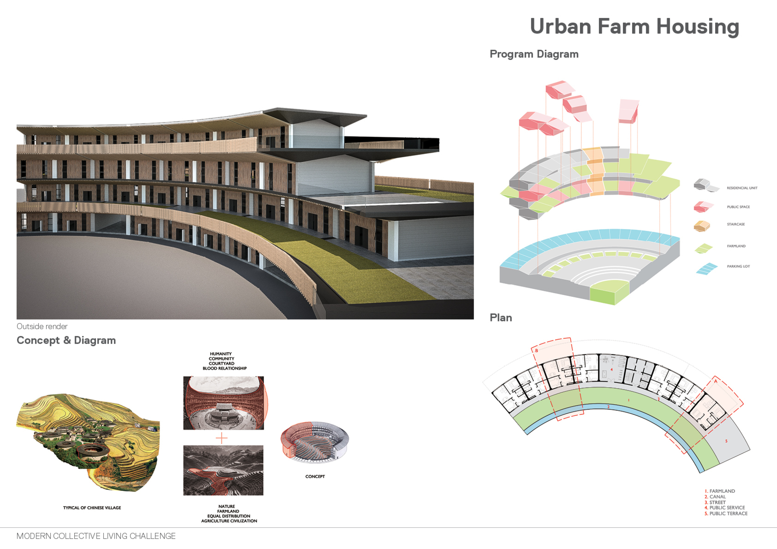 The Modern Collective Living Challenge is part of the Bee Breeders Global Housing Crisis competition series. For this architecture competition, participants were tasked with envisioning new forms of accessible housing for relocated farmers in rural China. There was a very high standard of entry, with a very strong sense of clarity and understanding of the brief in the submitted projects.