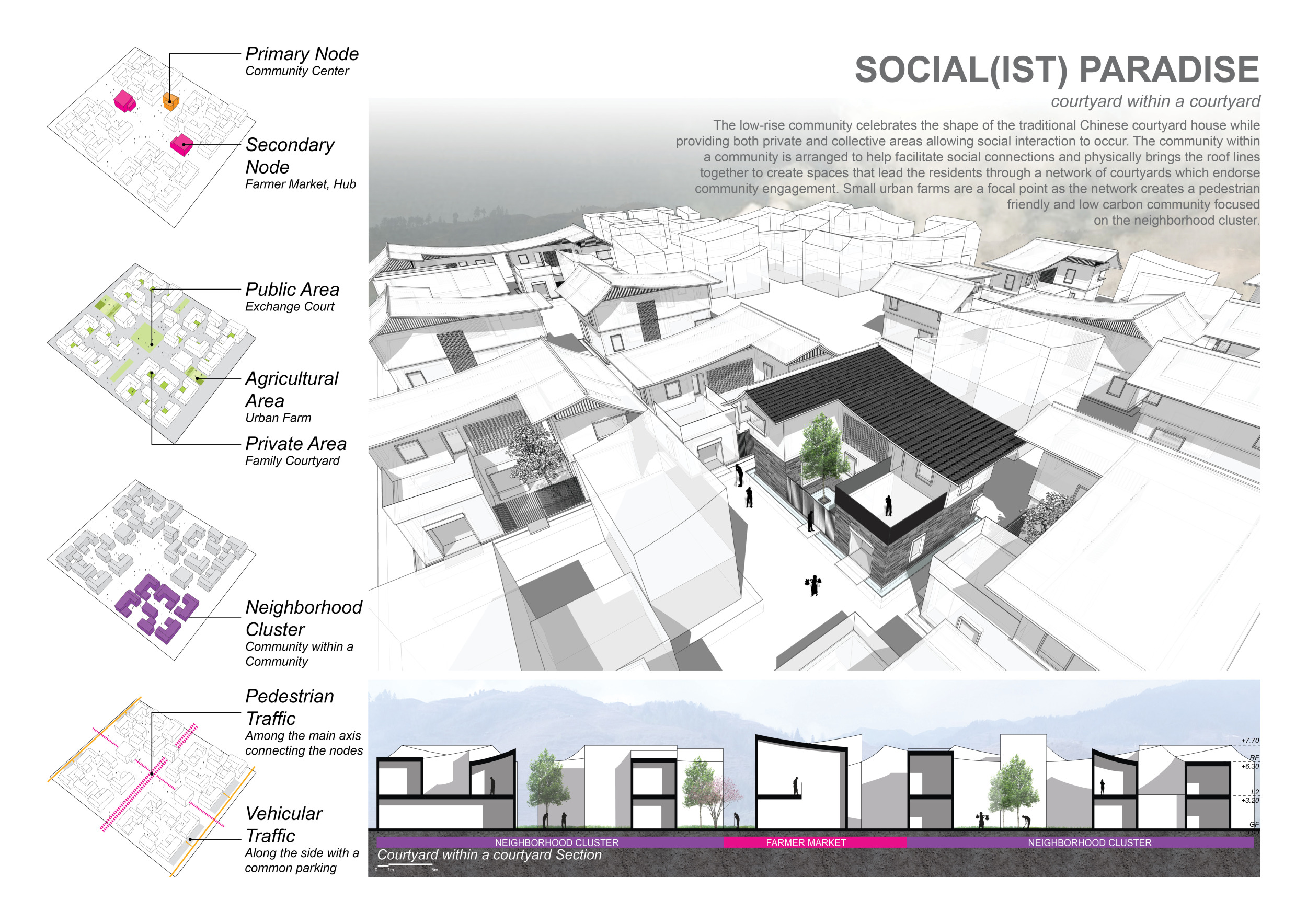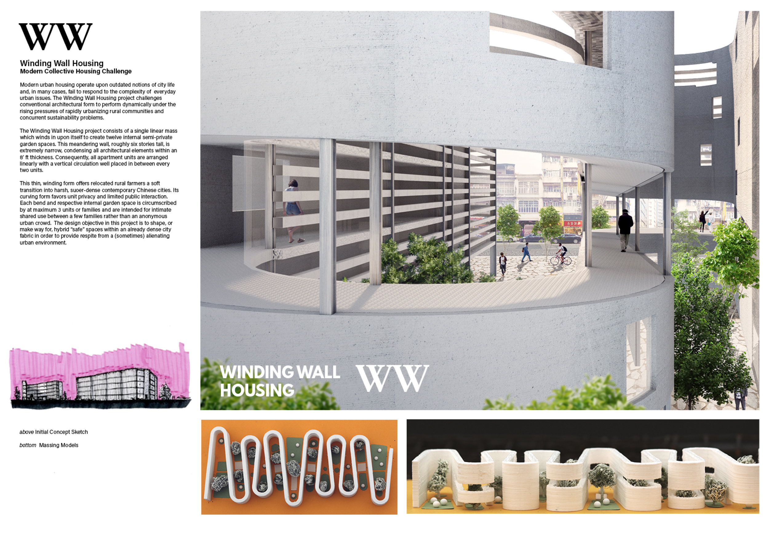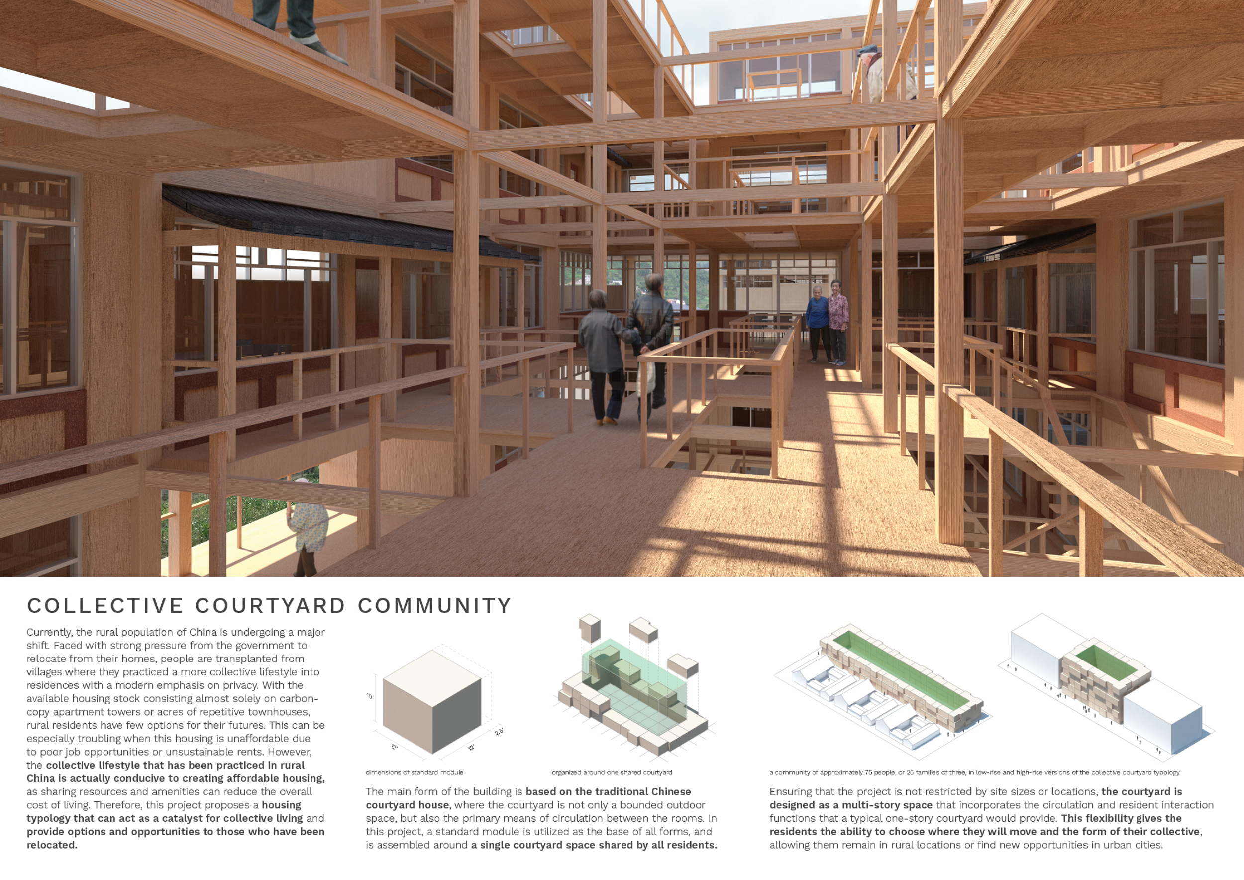 The Modern Collective Living Challenge is part of the Bee Breeders Global Housing Crisis competition series. For this architecture competition, participants were tasked with envisioning new forms of accessible housing for relocated farmers in rural China. There was a very high standard of entry, with a very strong sense of clarity and understanding of the brief in the submitted projects.