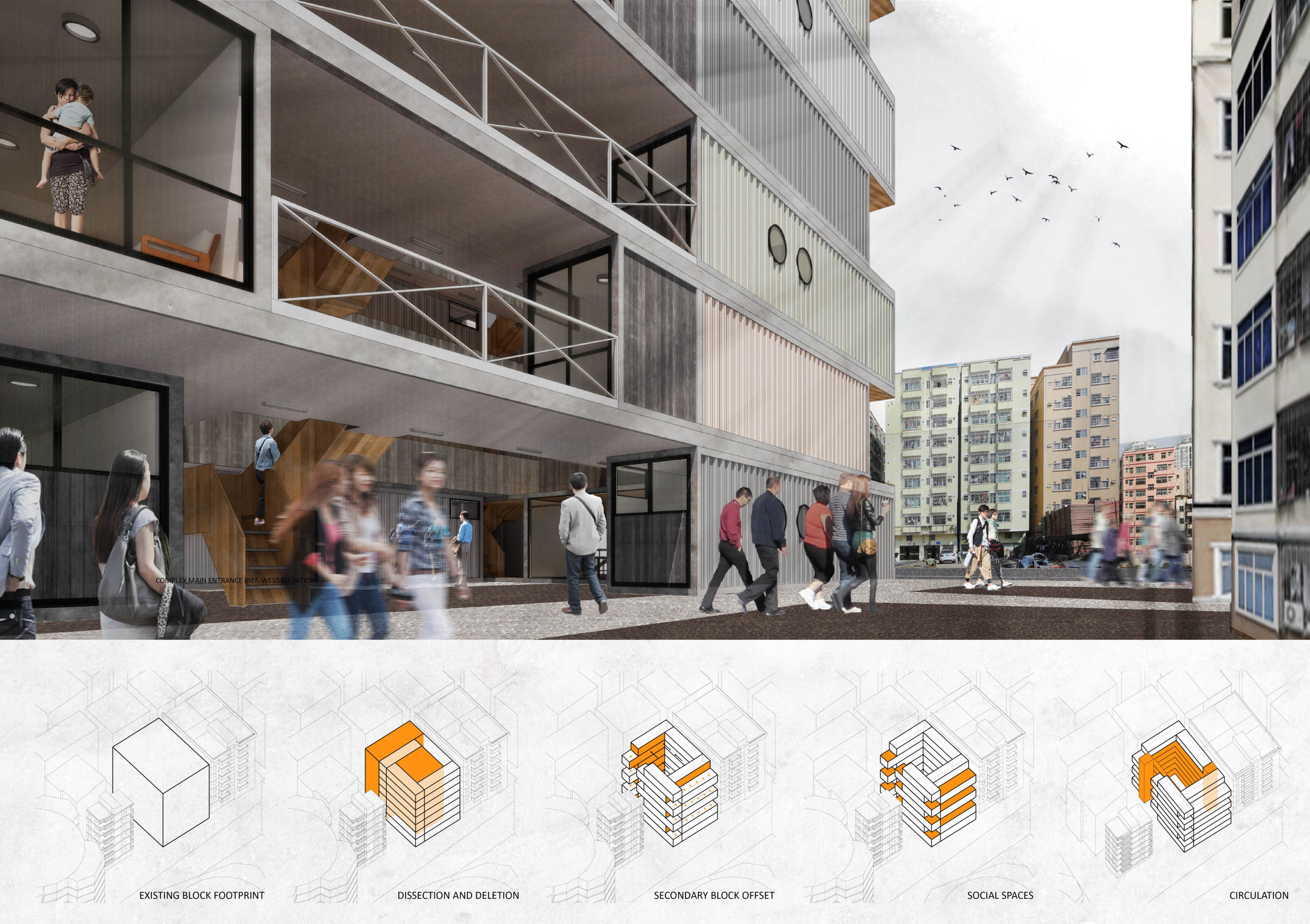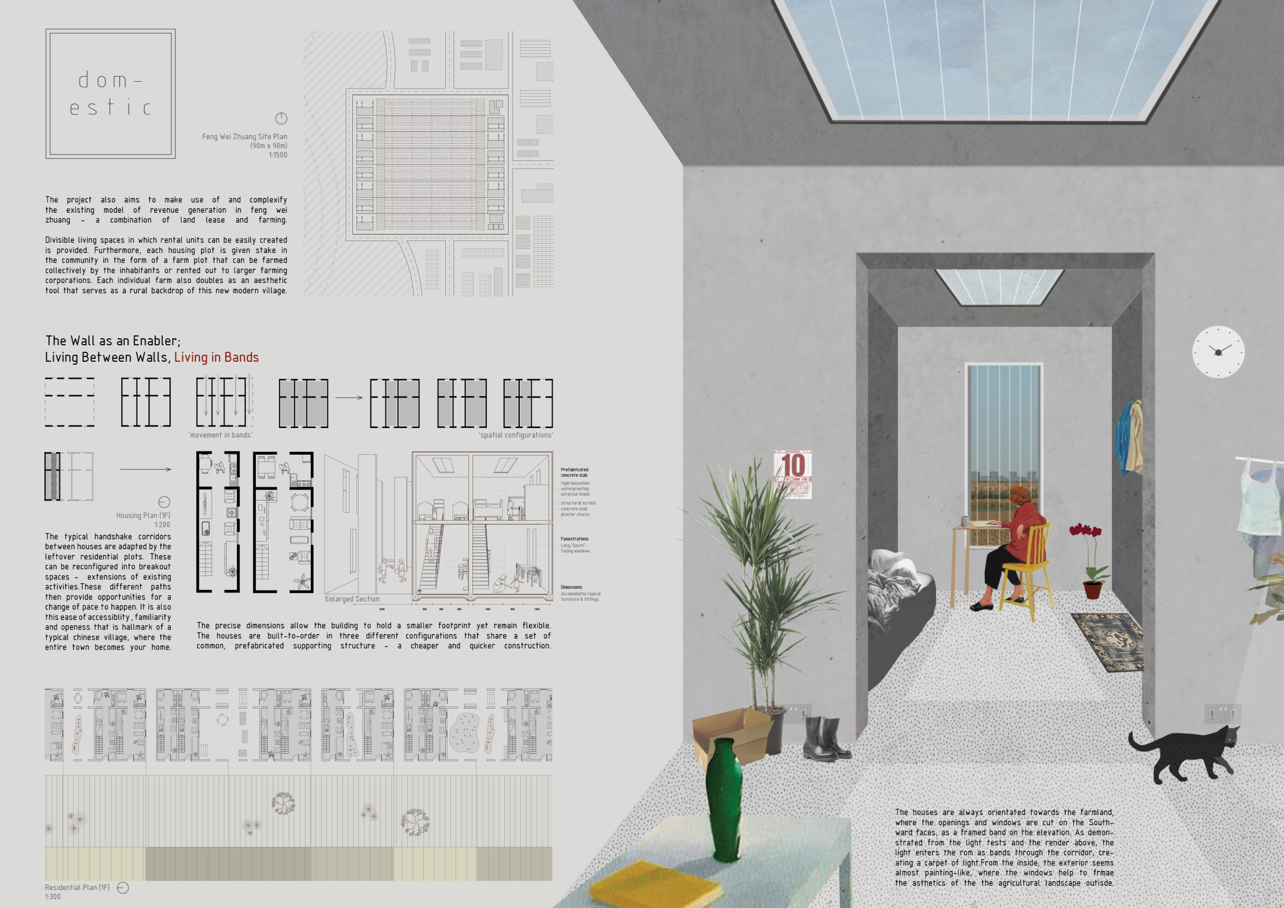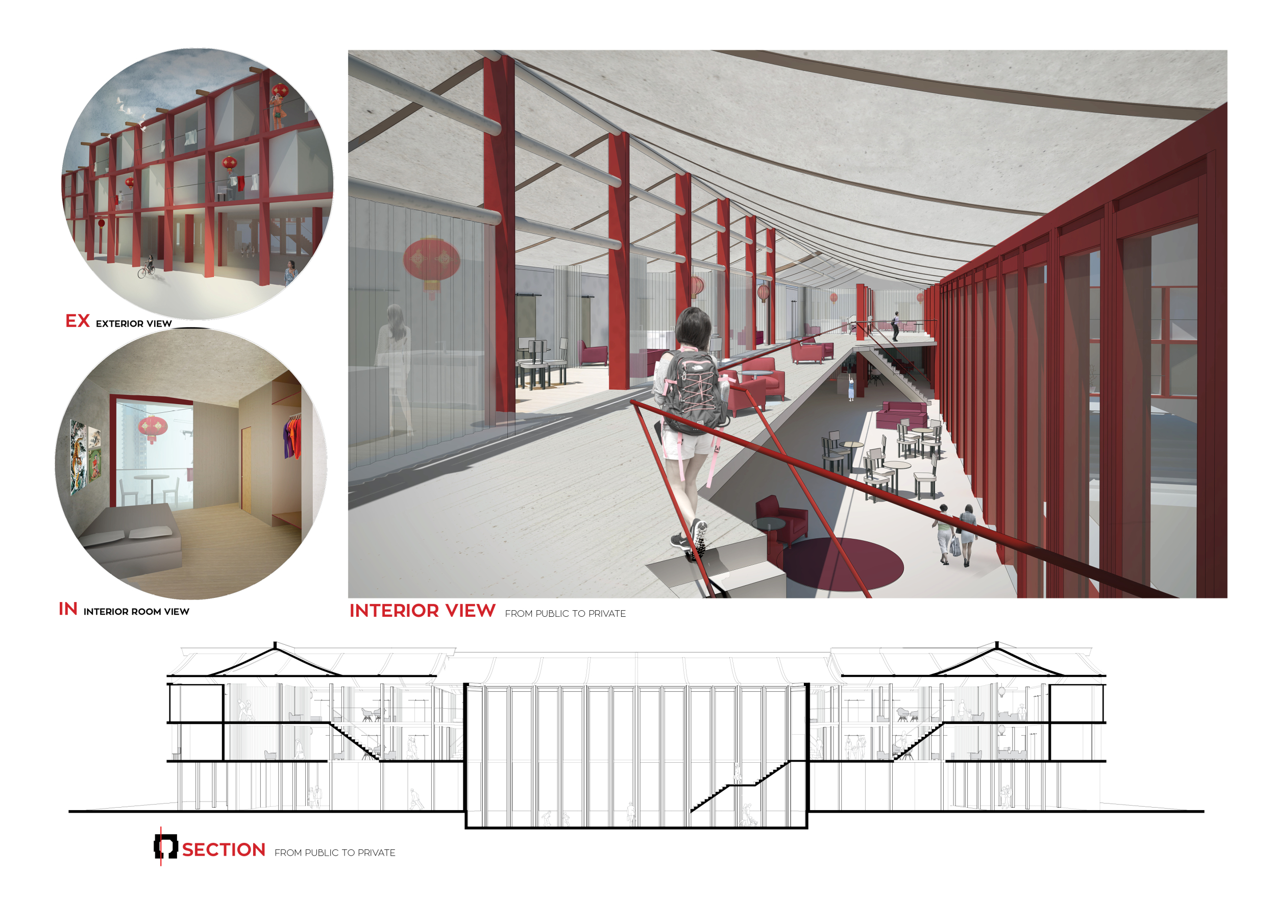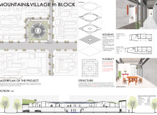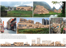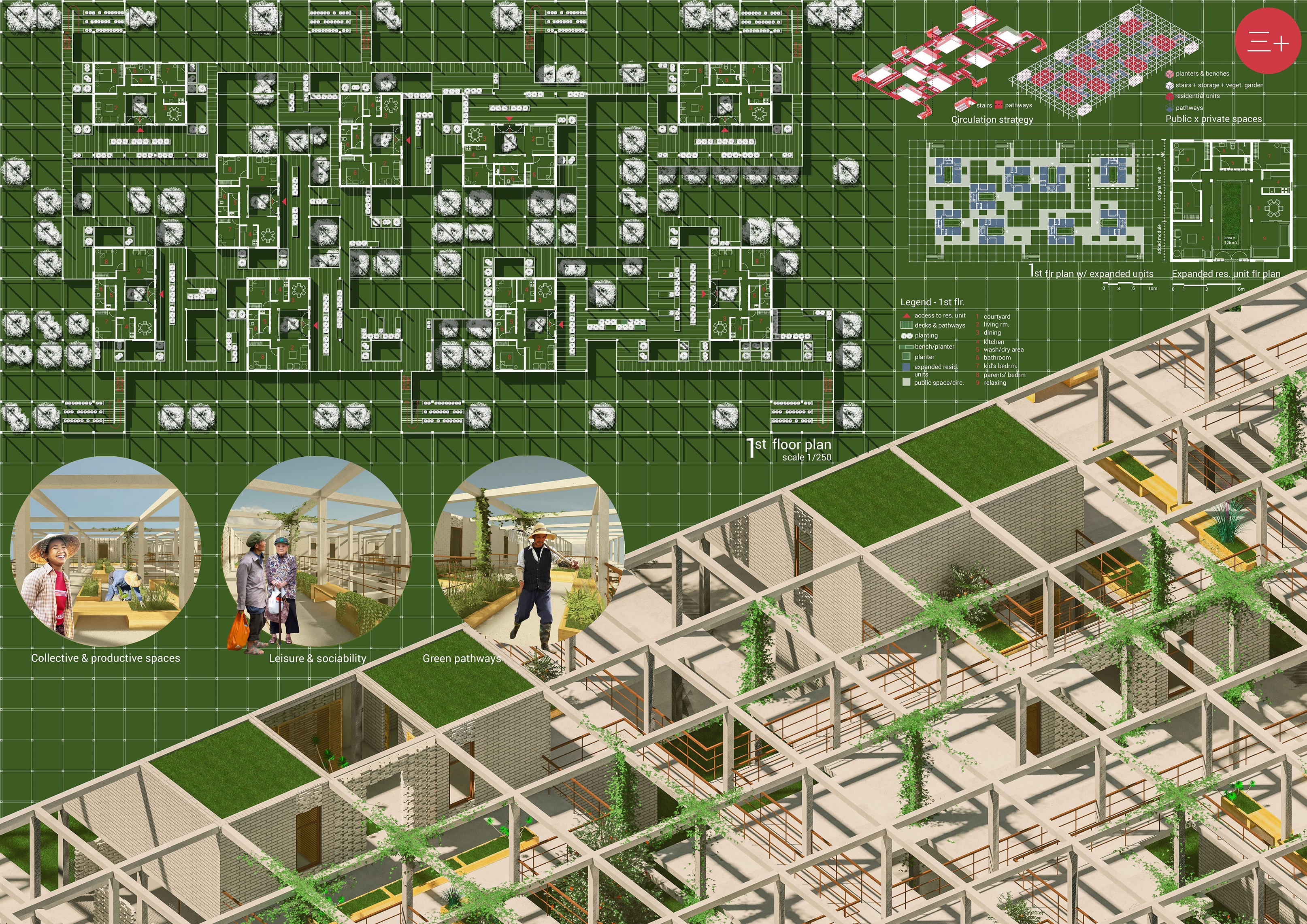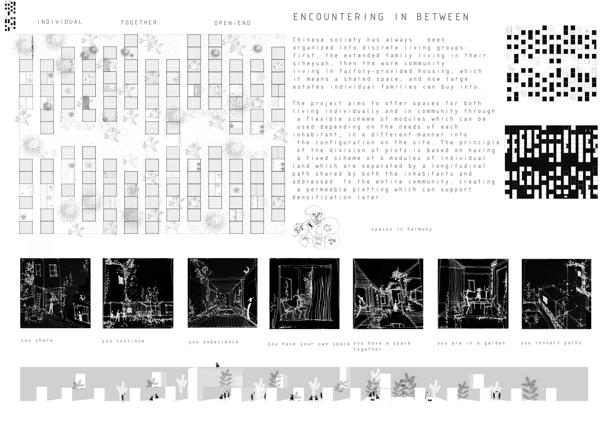 The One Grid, One Community project tackled the competition brief with a specific location in mind. Hypothetically-located in Chengdu, Sichuan Province, this lifted grid structure would be an adaptable housing project in a region in which villagers come from many different parts of the country. Read more The One Grid, One Community project uses levels to separate the private from the public, realising a rich spectrum, of public programs and spaces, as well as giving the community the freedom for customisation. It is set to the principles that everyone, regardless of their background, is able to participate and enjoy the closely-bonded community.