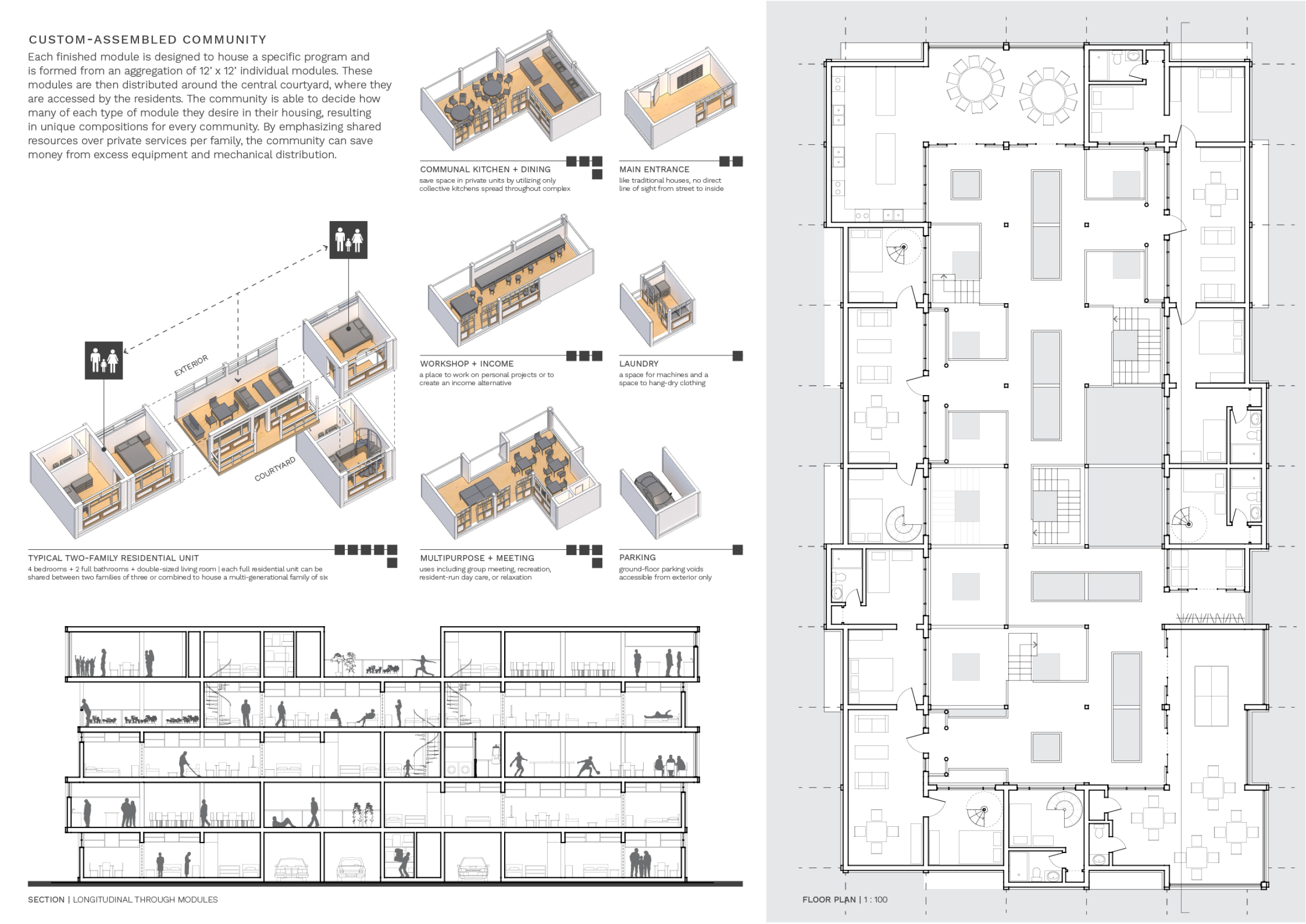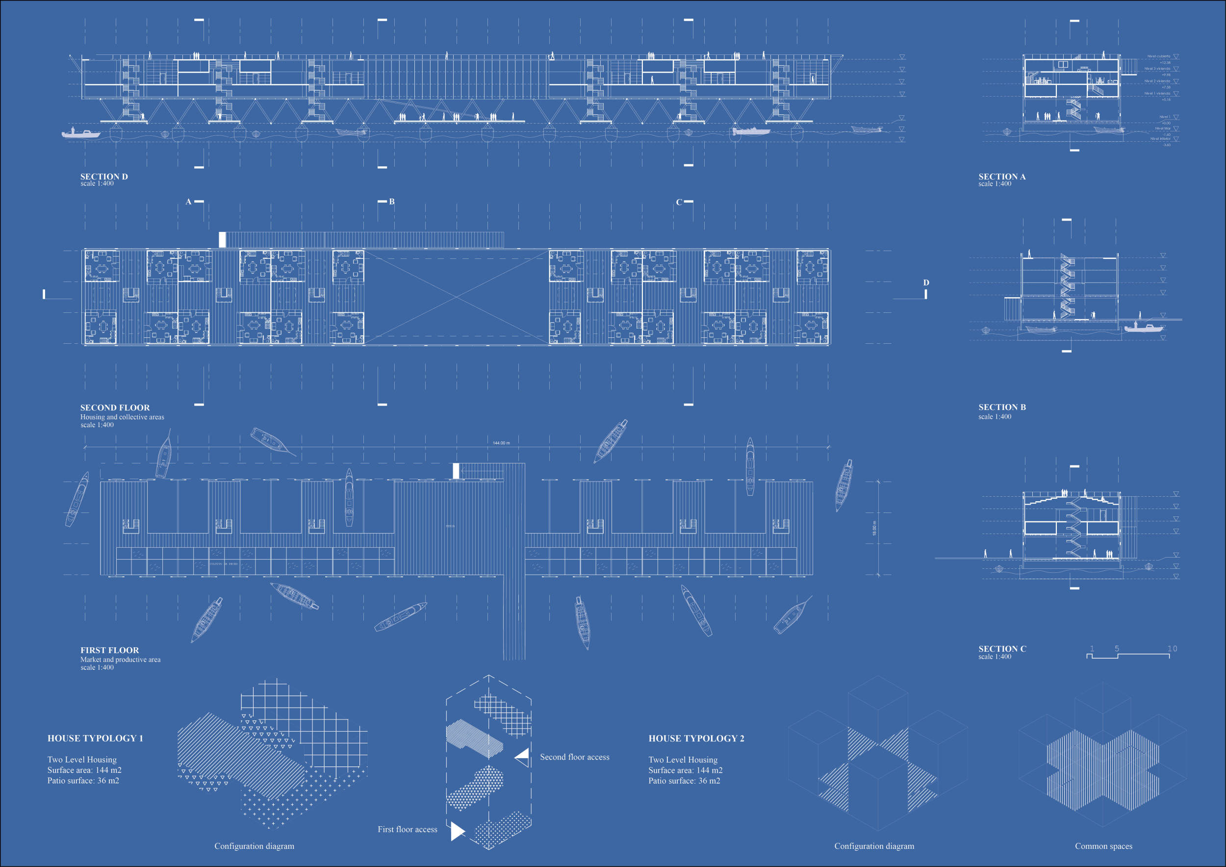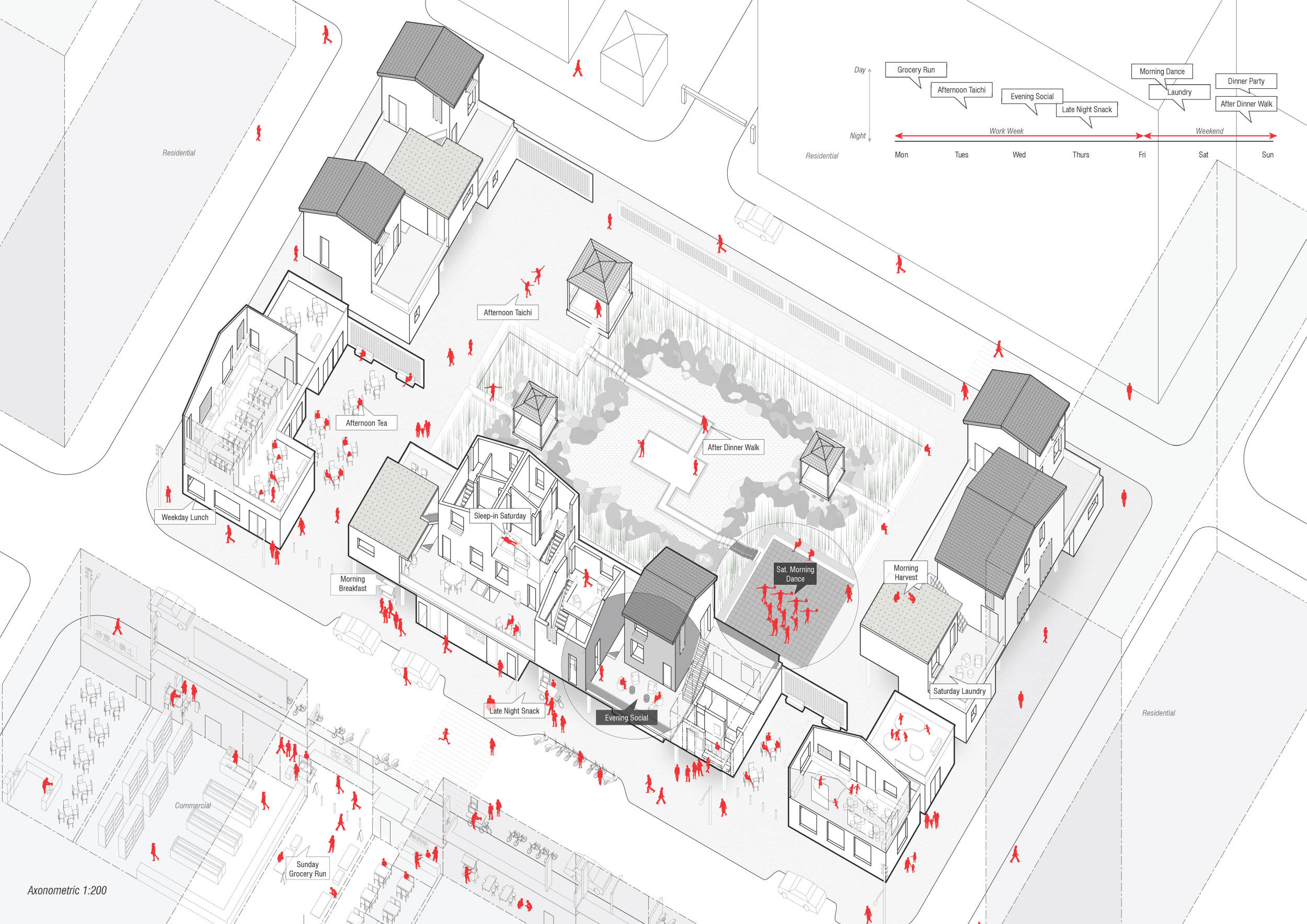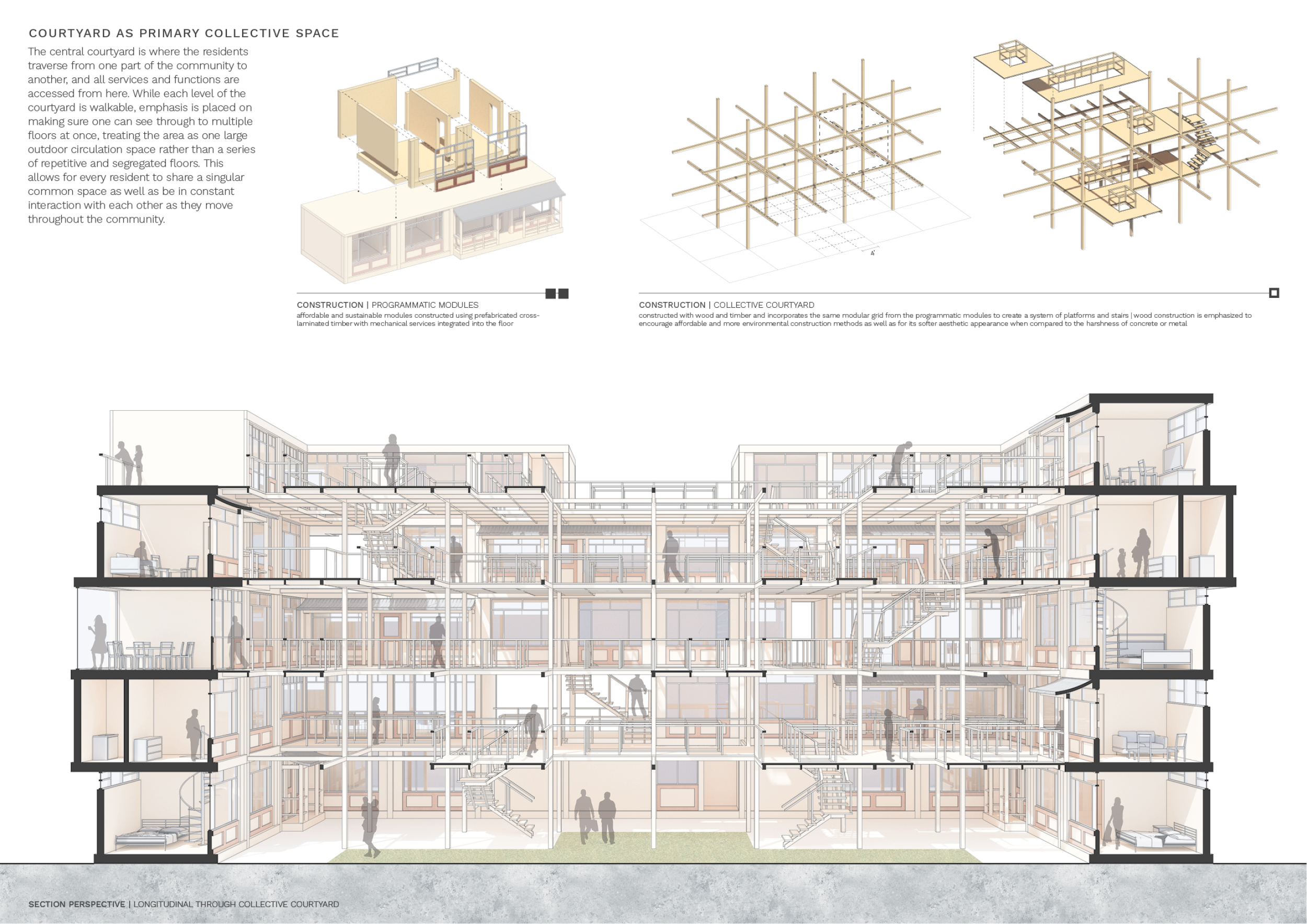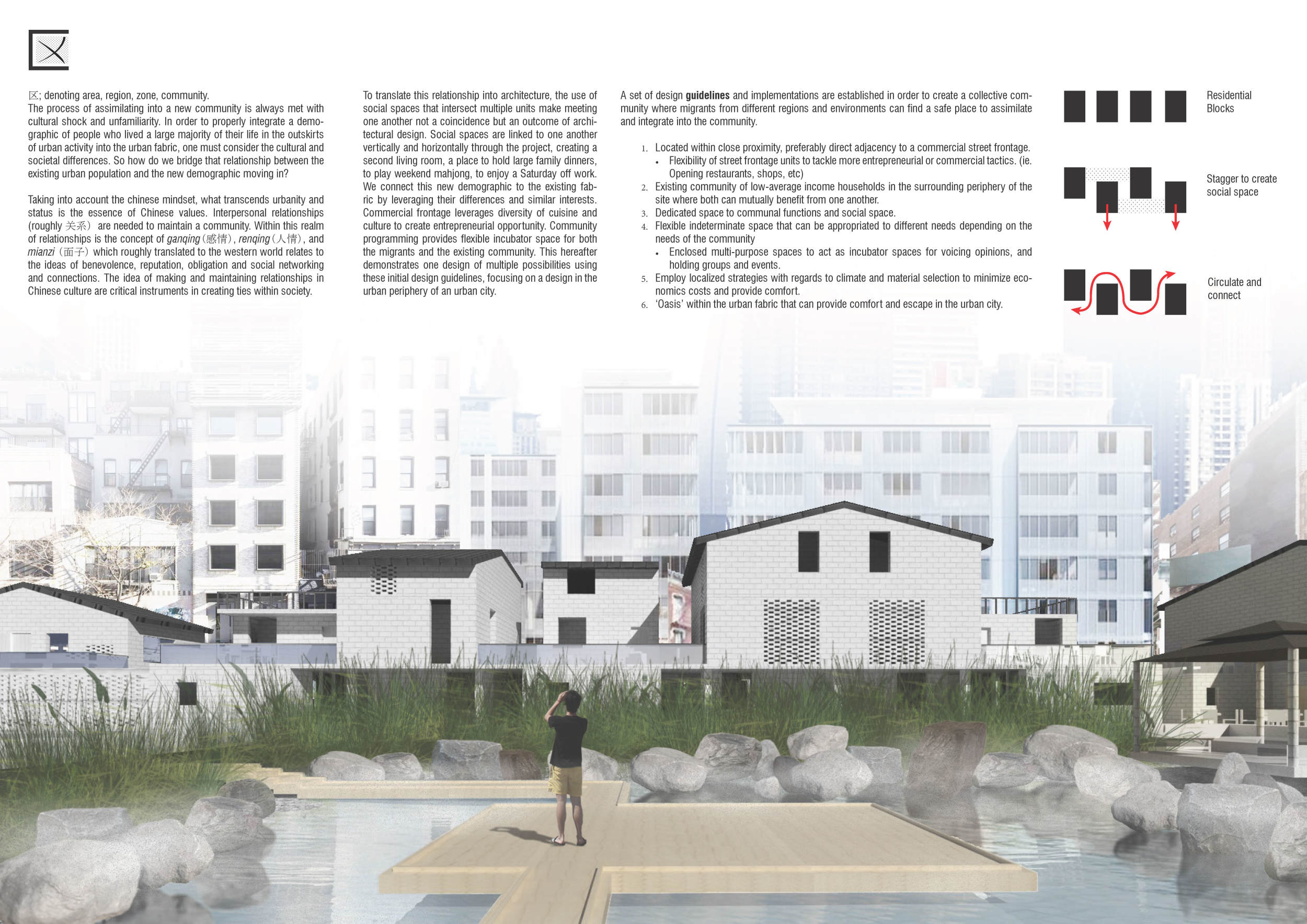 The One Grid, One Community project tackled the competition brief with a specific location in mind. Hypothetically-located in Chengdu, Sichuan Province, this lifted grid structure would be an adaptable housing project in a region in which villagers come from many different parts of the country. Read more The One Grid, One Community project uses levels to separate the private from the public, realising a rich spectrum, of public programs and spaces, as well as giving the community the freedom for customisation. It is set to the principles that everyone, regardless of their background, is able to participate and enjoy the closely-bonded community.