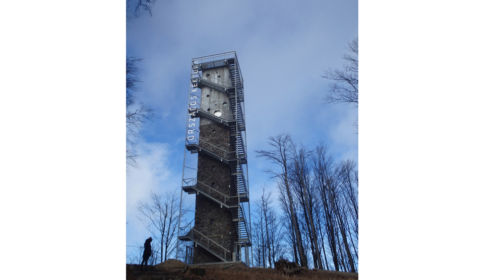 Originally constructed from local stone and rising to a height of 17 metres (55 feet), the Lookout Tower at Galyatető was more recently updated to extend higher above the trees that had grown to surpass the vantage point in height. The extended tower is now 30 metres (98 feet) and offers unimpaired 360-degree views from its roof, and the architects also added a reinforced concrete section that contains three hiking shelters. Visitors can reach these shelters via a mesh-enclosed steel staircase that also leads all the way up to the roof, with each room being accessible through a circular hatch and measures 3.5m x 3.5m. Just enough room to sleep up to six people.