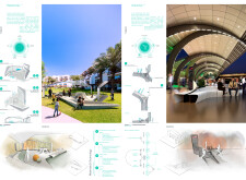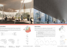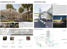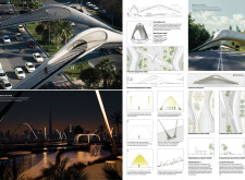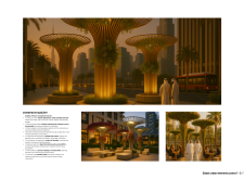I thought this submission, based on the tree, was an incredibly simple but very powerful concept, a variation and extension of the innovation and ideas used in projects such as the Louvre Abu Dhabi. I particularly appreciated the proposed uses, including the cooling columns. My only minor concern relates to environmental performance and adaptability, but overall this is a very creative and forward-thinking proposal, well aligned with the heritage and culture of the UAE. An excellent submission, with clear potential for further development to support the continued growth of Dubai and the wider region.