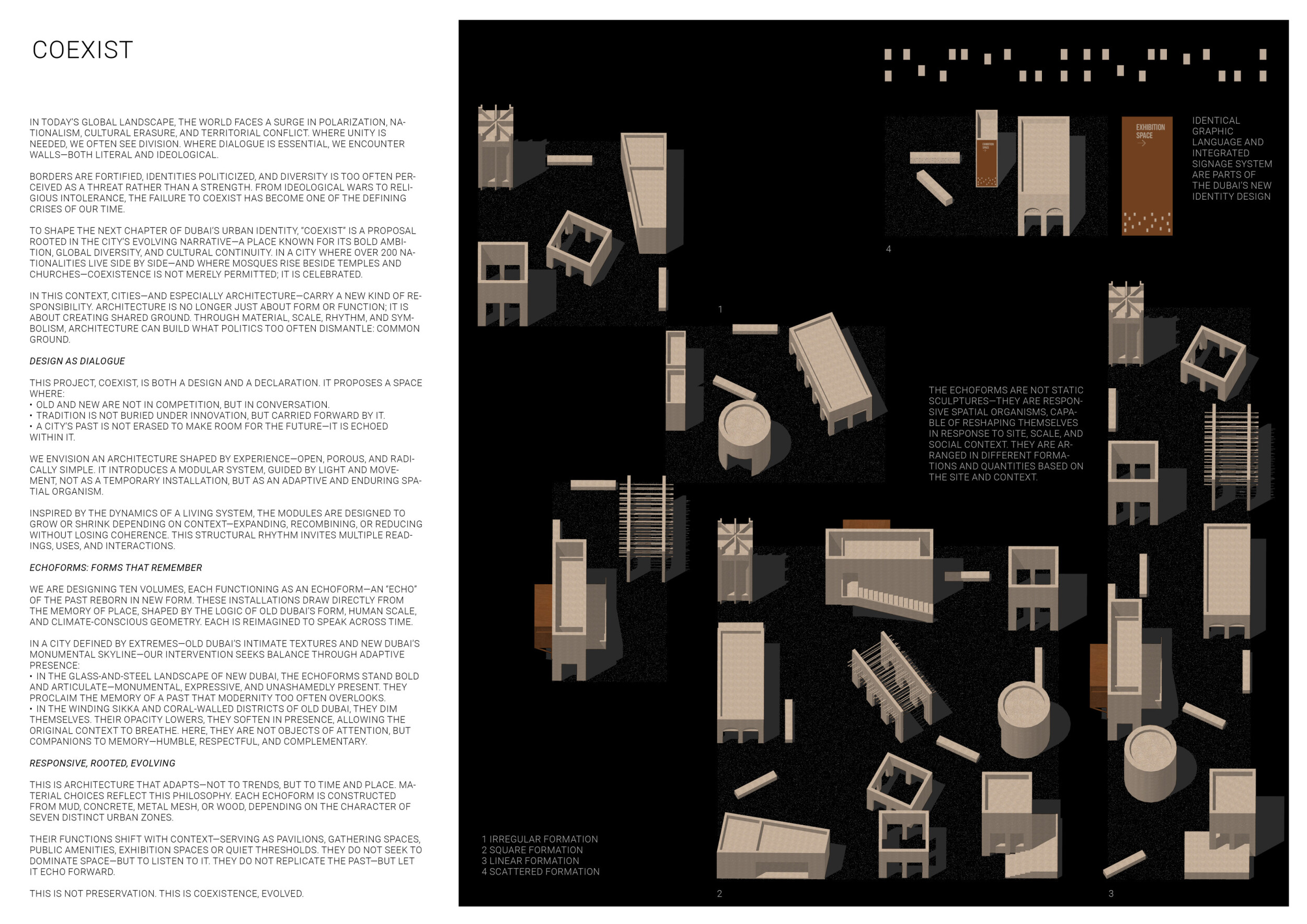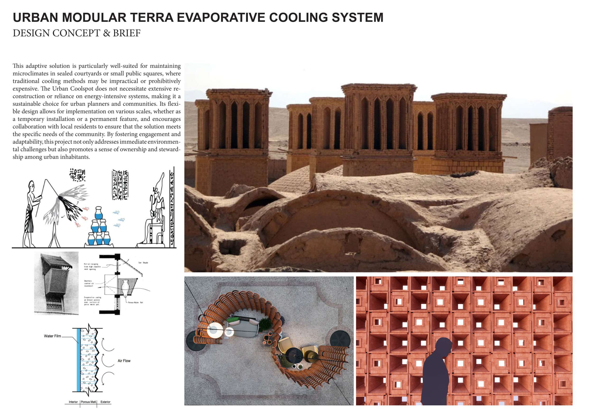 This proposal introduces Breathing Masonry as a modular, climate-responsive architectural system designed to operate across Dubai’s diverse urban and environmental conditions. Drawing inspiration from the natural logic of trees and the passive cooling principles of traditional Middle Eastern architecture, the project rethinks material mass as an active mediator between climate and public space. Read more Through evaporative cooling, capillary water movement, and surface-driven heat exchange, the system creates localized microclimates without reliance on mechanical energy. Conceived as a family of adaptable vertical elements, the proposal can function as cooling columns, shading structures, urban markers, or integrated components within larger architectural assemblies. Its strength lies in its scalability and contextual flexibility, allowing deployment from coastal zones to dense urban corridors while maintaining a consistent tectonic language. By combining environmental performance with symbolic clarity, the project positions itself as an infrastructural yet expressive response to Dubai’s climatic challenges and rapid growth.
