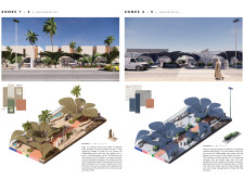 I thought the alignment of desert to pavement was very innovative and the zonal shapes all make perfect sense; however, I was left a little underwhelmed. This submission could have gone much further to develop these ideas particularly in the use of materials to emphasis and celebrate the Emirati culture and history.