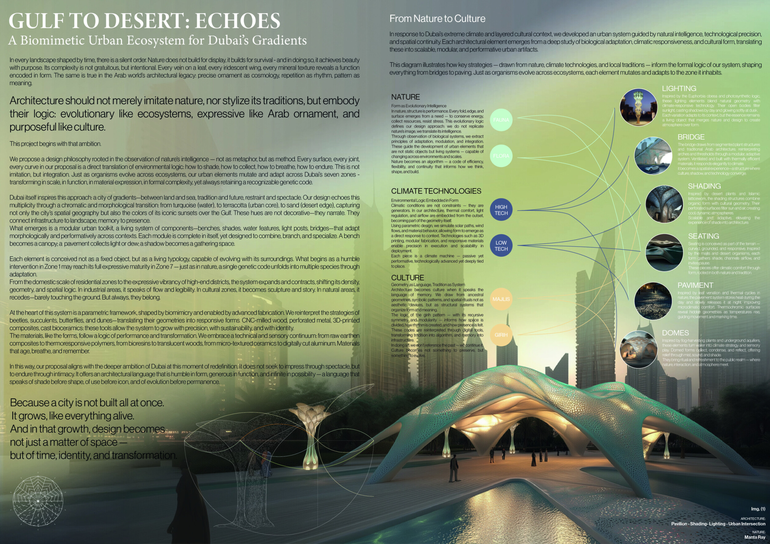 GULF TO DESERT: ECHOES. A Biomimetic Urban Ecosystem for Dubai’s Gradients.