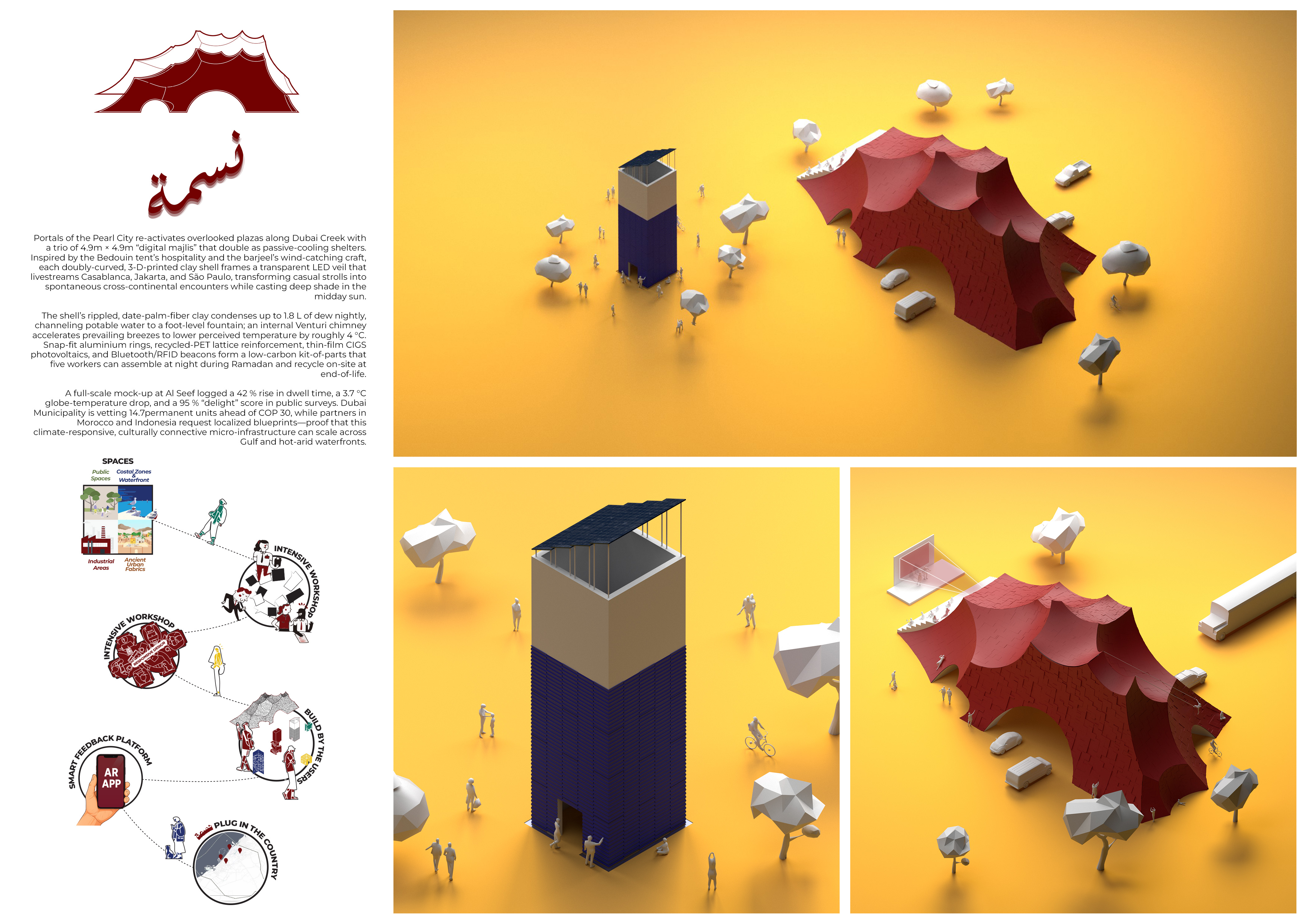 This inaugural edition received an exceptional response, with submissions from around the world proposing visionary, grounded, and culturally sensitive solutions. The total prize fund of 2,000,000 AED (approx. €500,000) reflected the city's strong commitment to innovation in the public realm, and to realizing select winning concepts as built prototypes across key locations in Dubai.