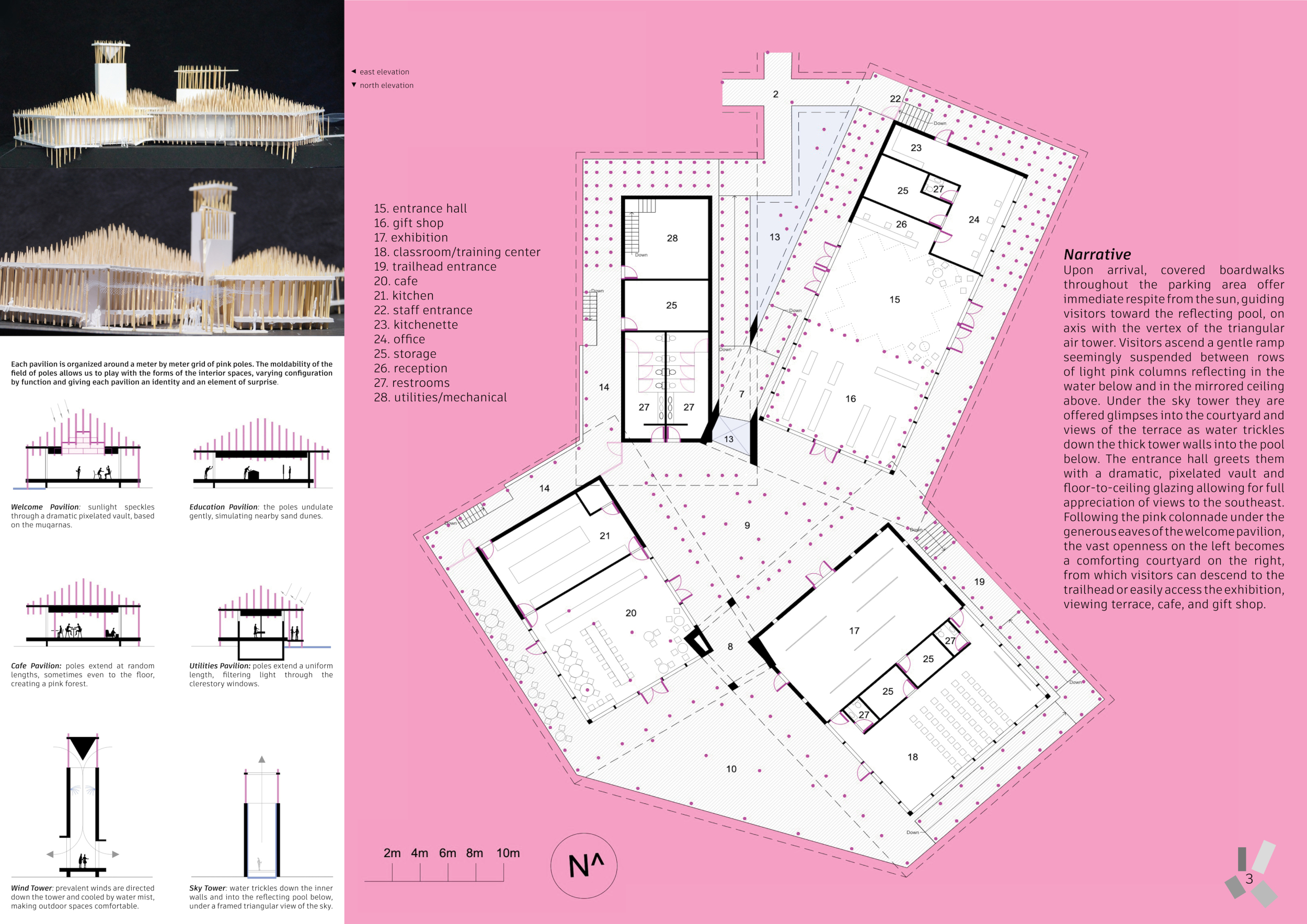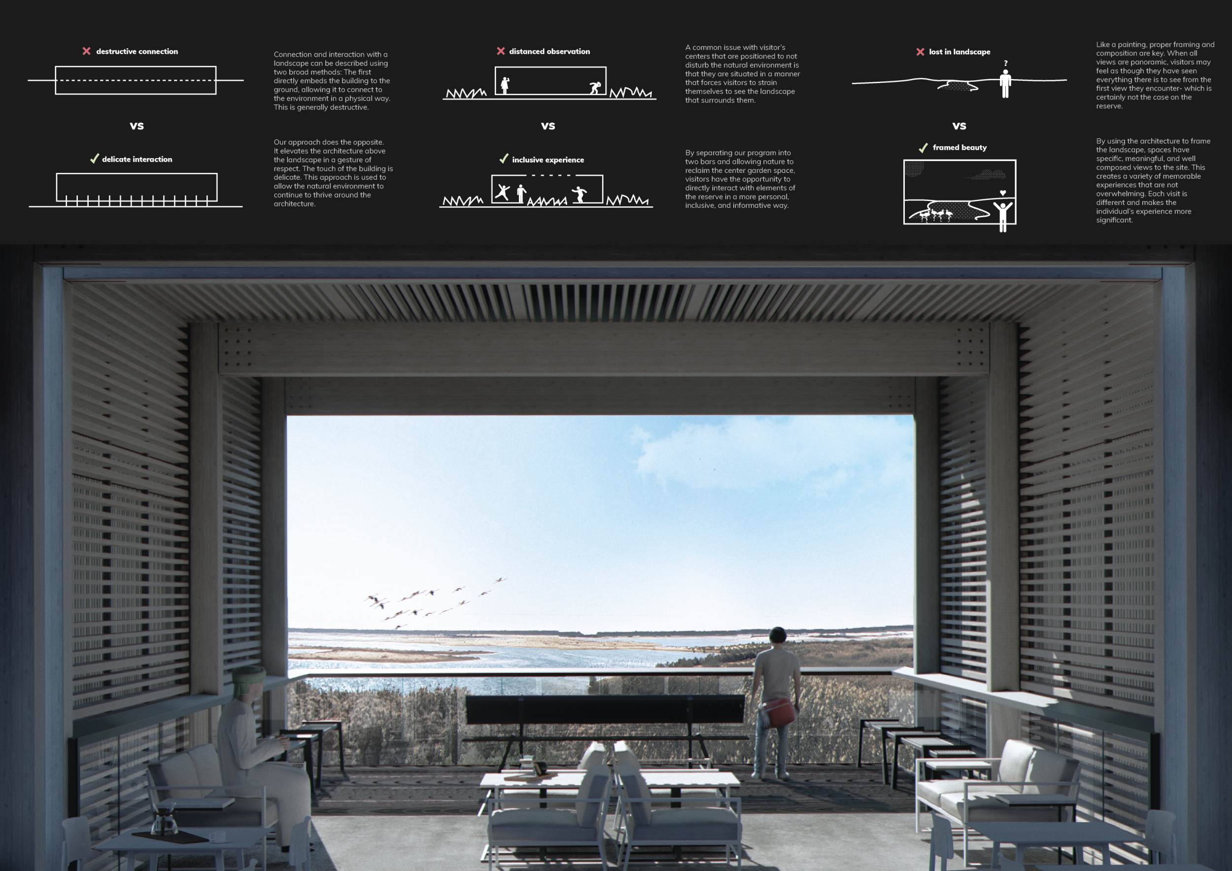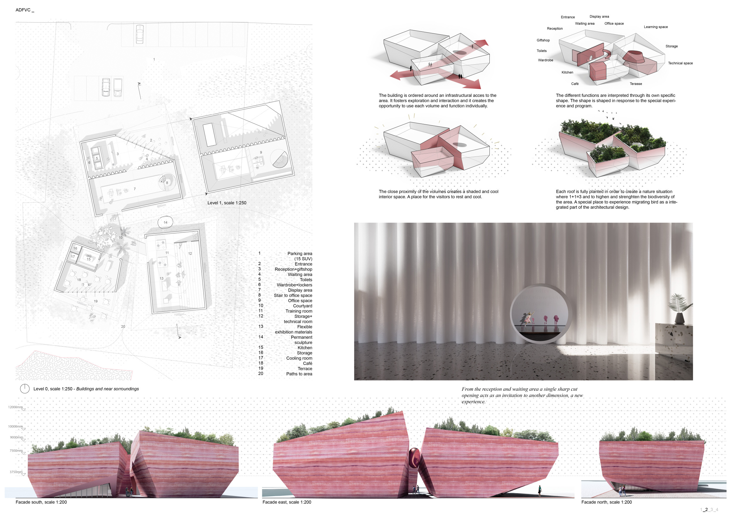 The jury sought designs with sustainability and constructability in mind. Above all, the designs were judged positively if they showed respect for the reserve’s fragile ecosystem. The visitor center is to be both a subtle building in harmony with its context, as well as an iconic architectural landmark.