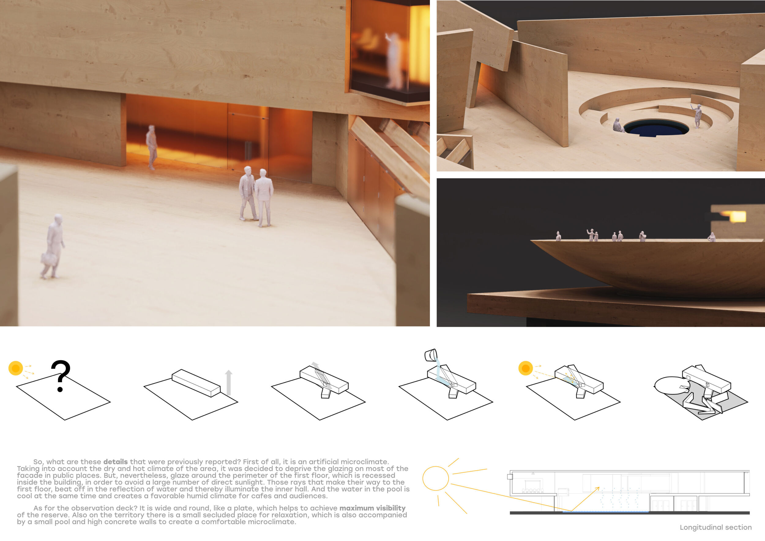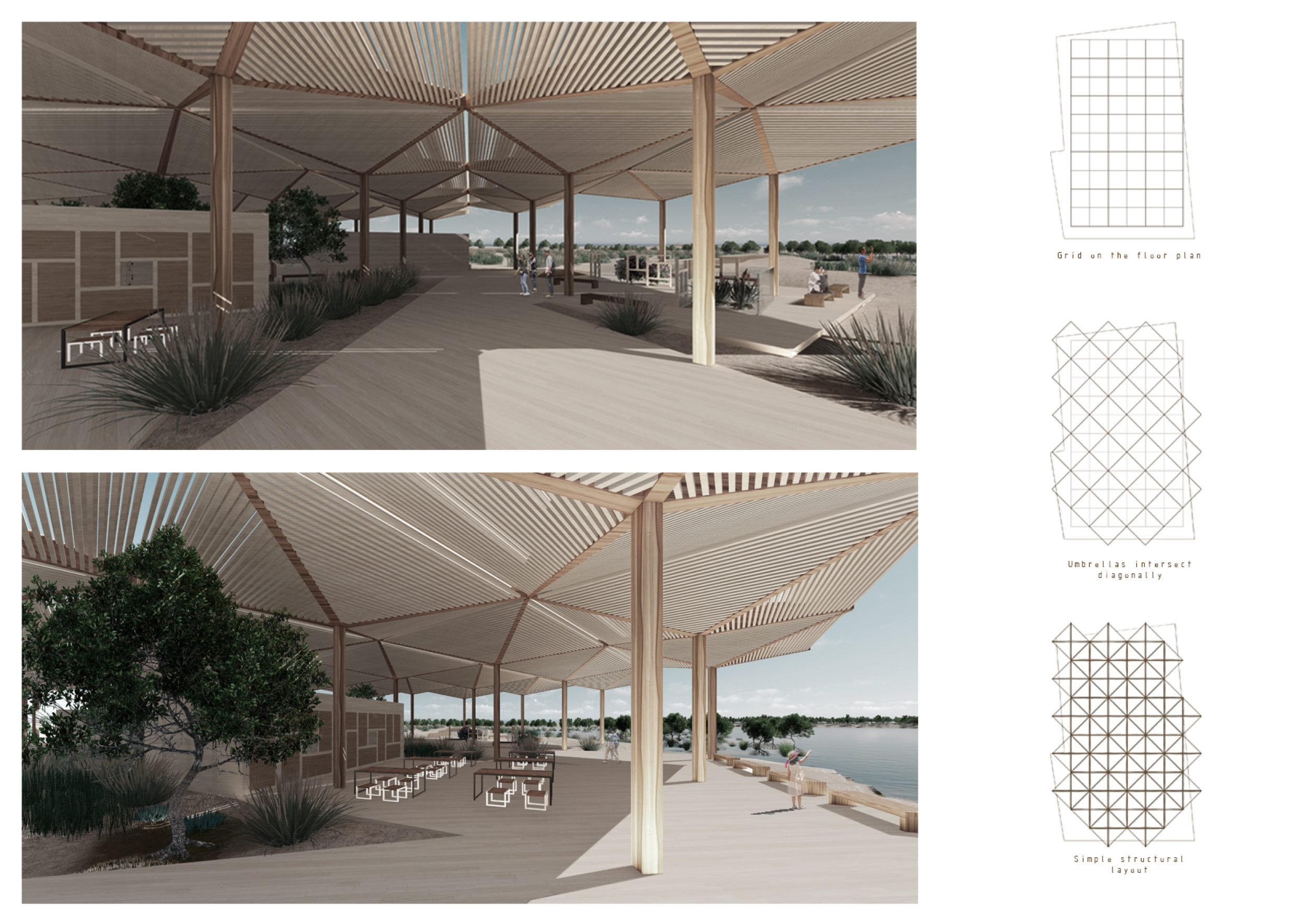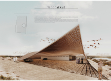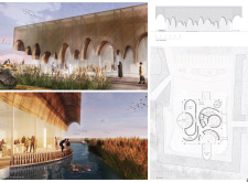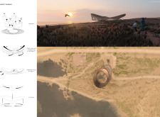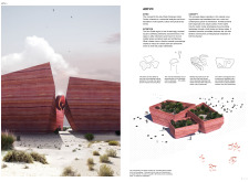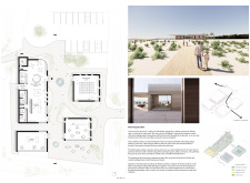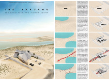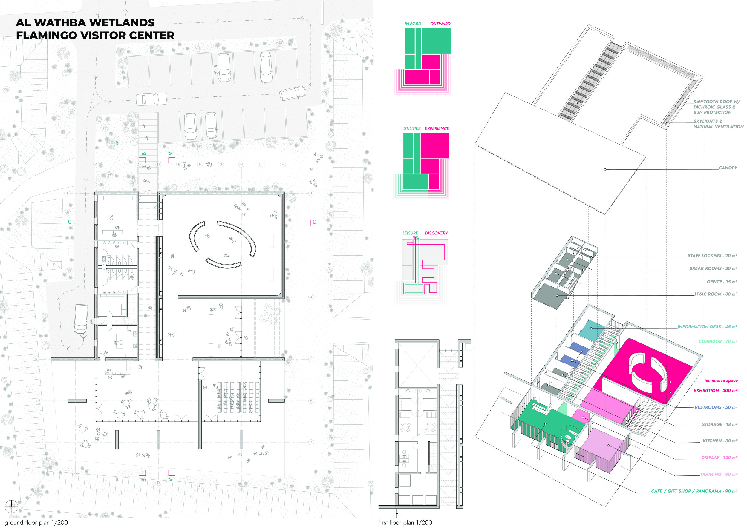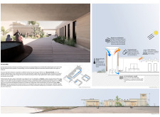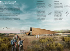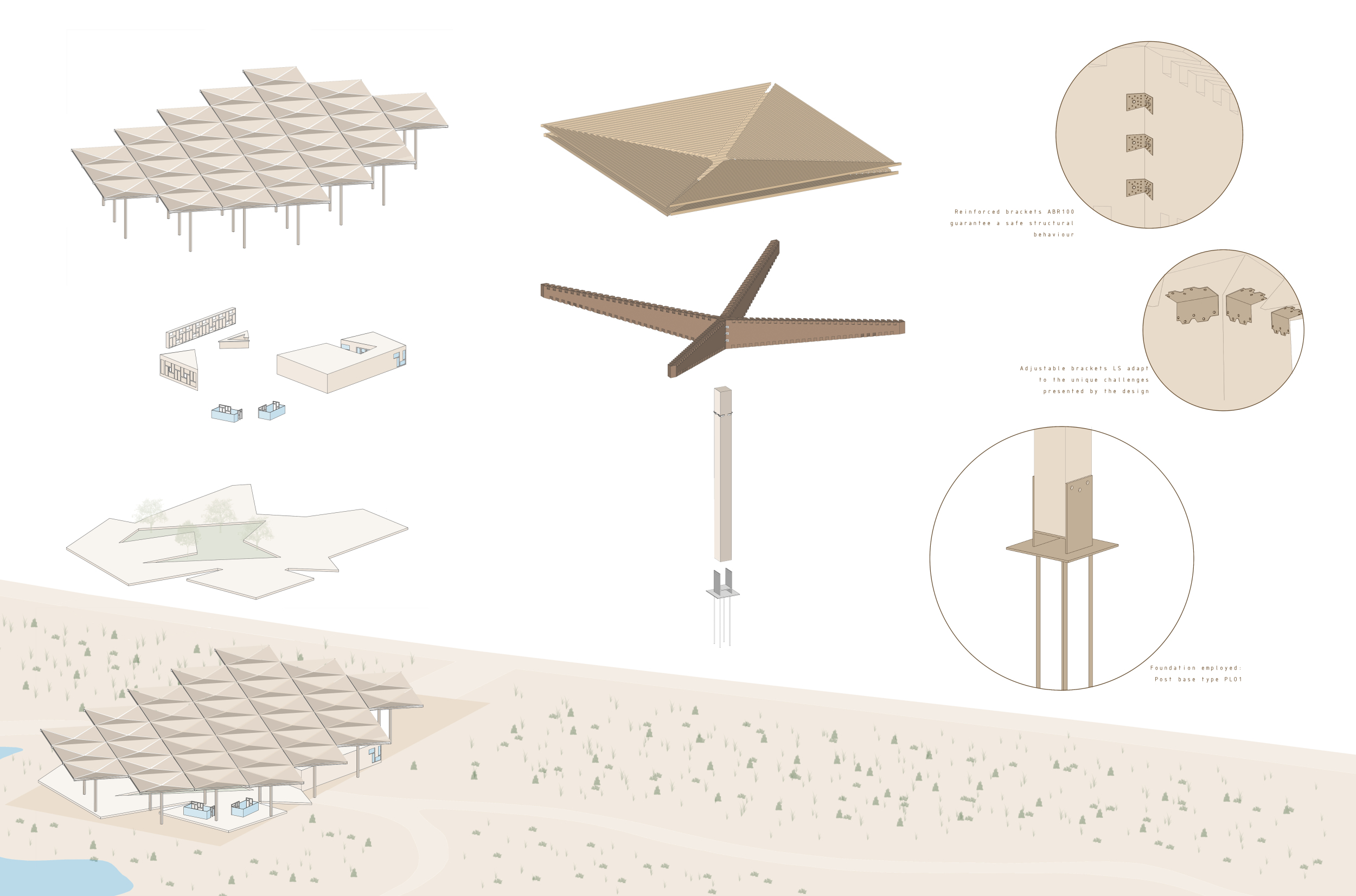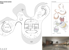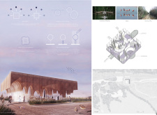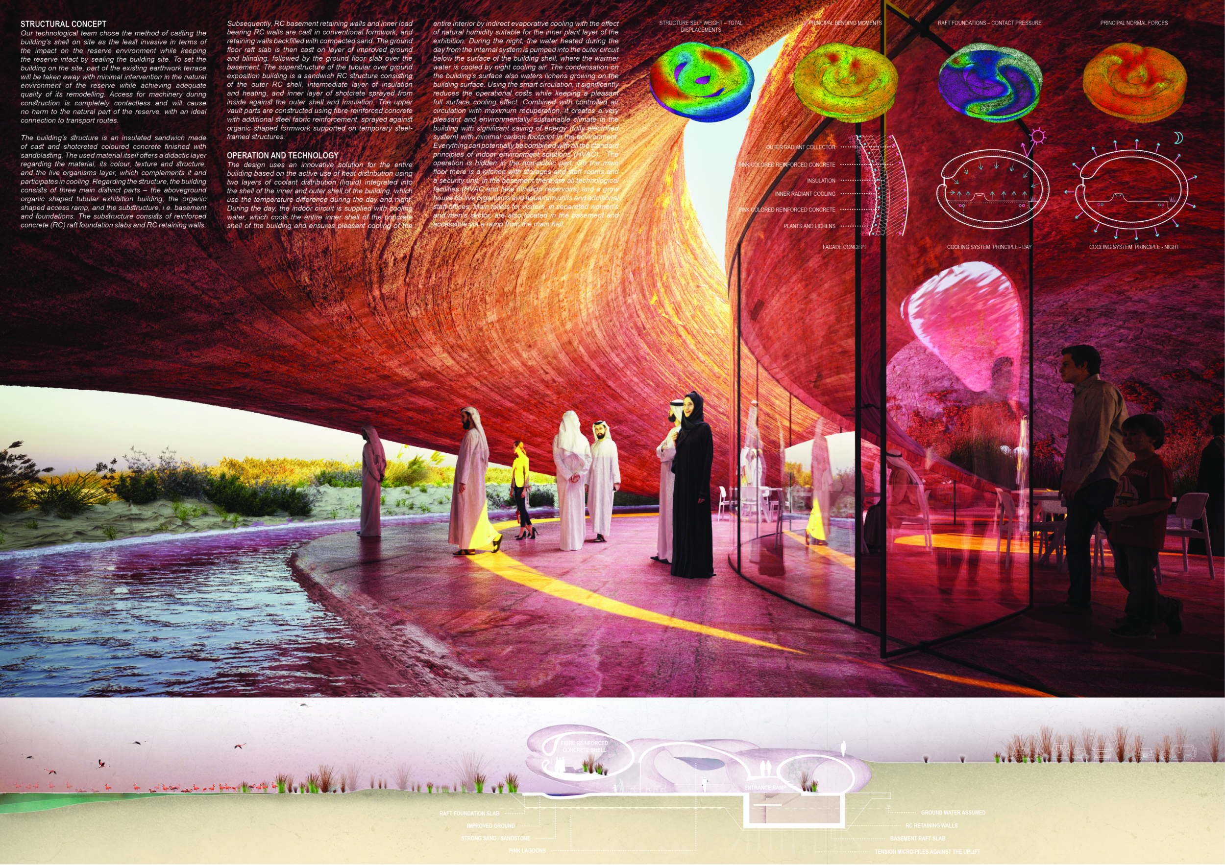 Competition participants were tasked with submitting concepts for a new visitor center, designed in balance with Al Wathba’s unique natural environment. The visitor center is to be programmed with facilities including an information center, cafe, terrace, souvenir shop, display area for specimens, training center, toilets, and a car park.