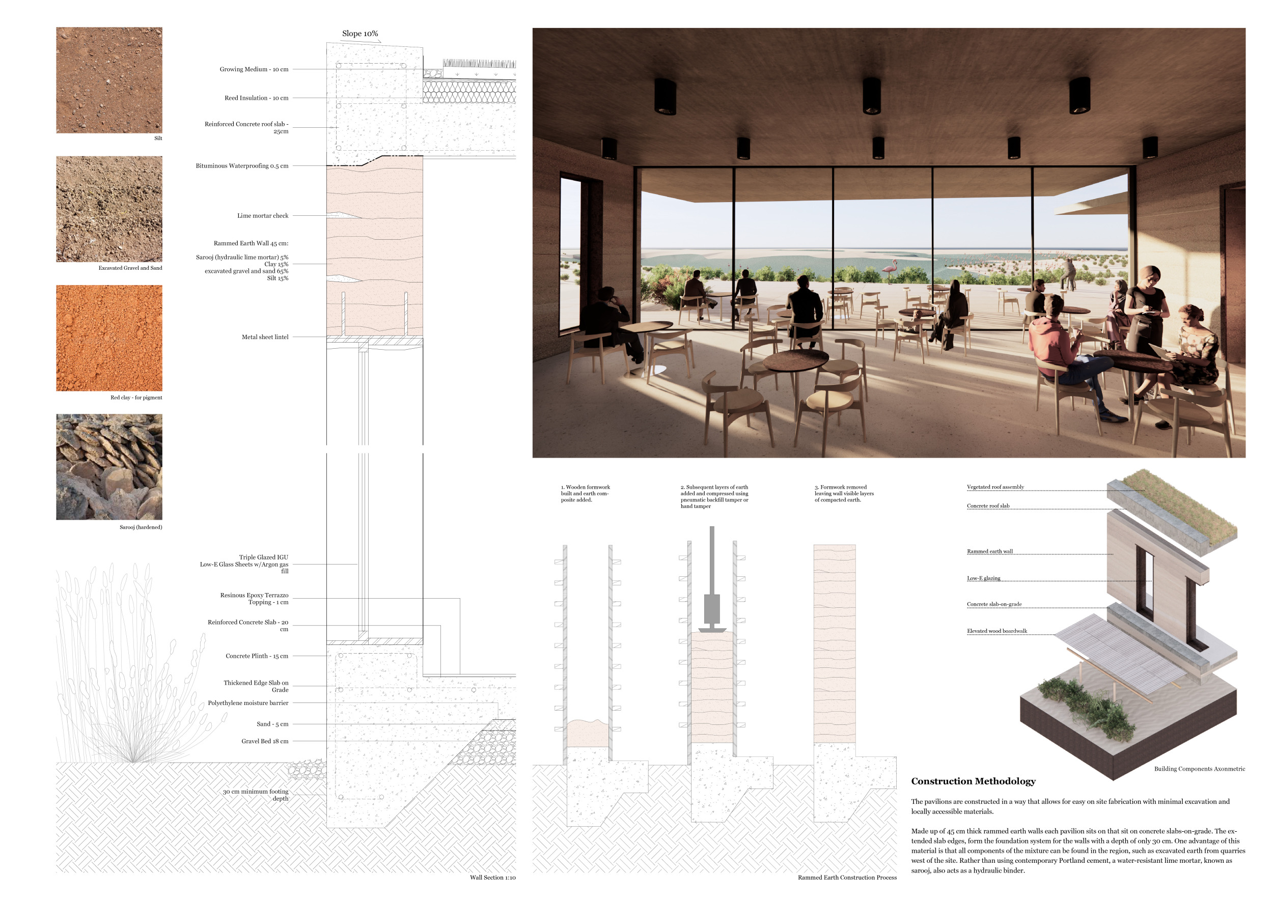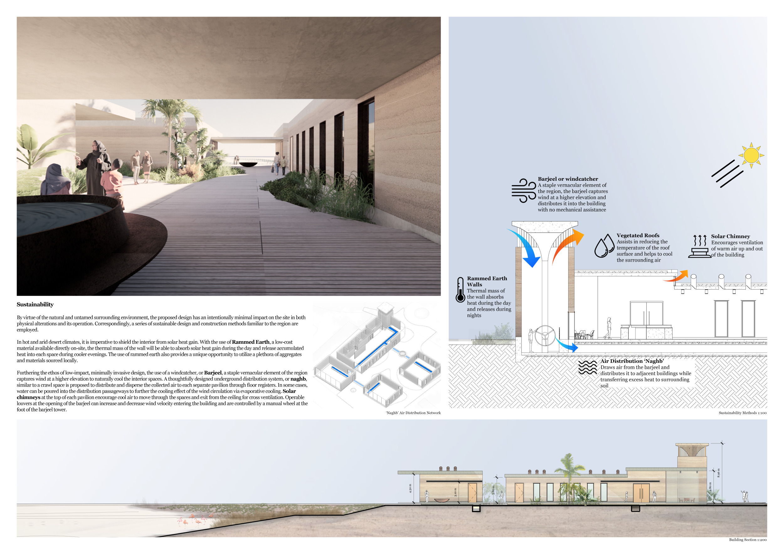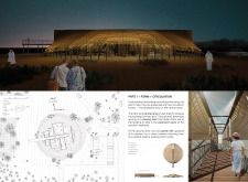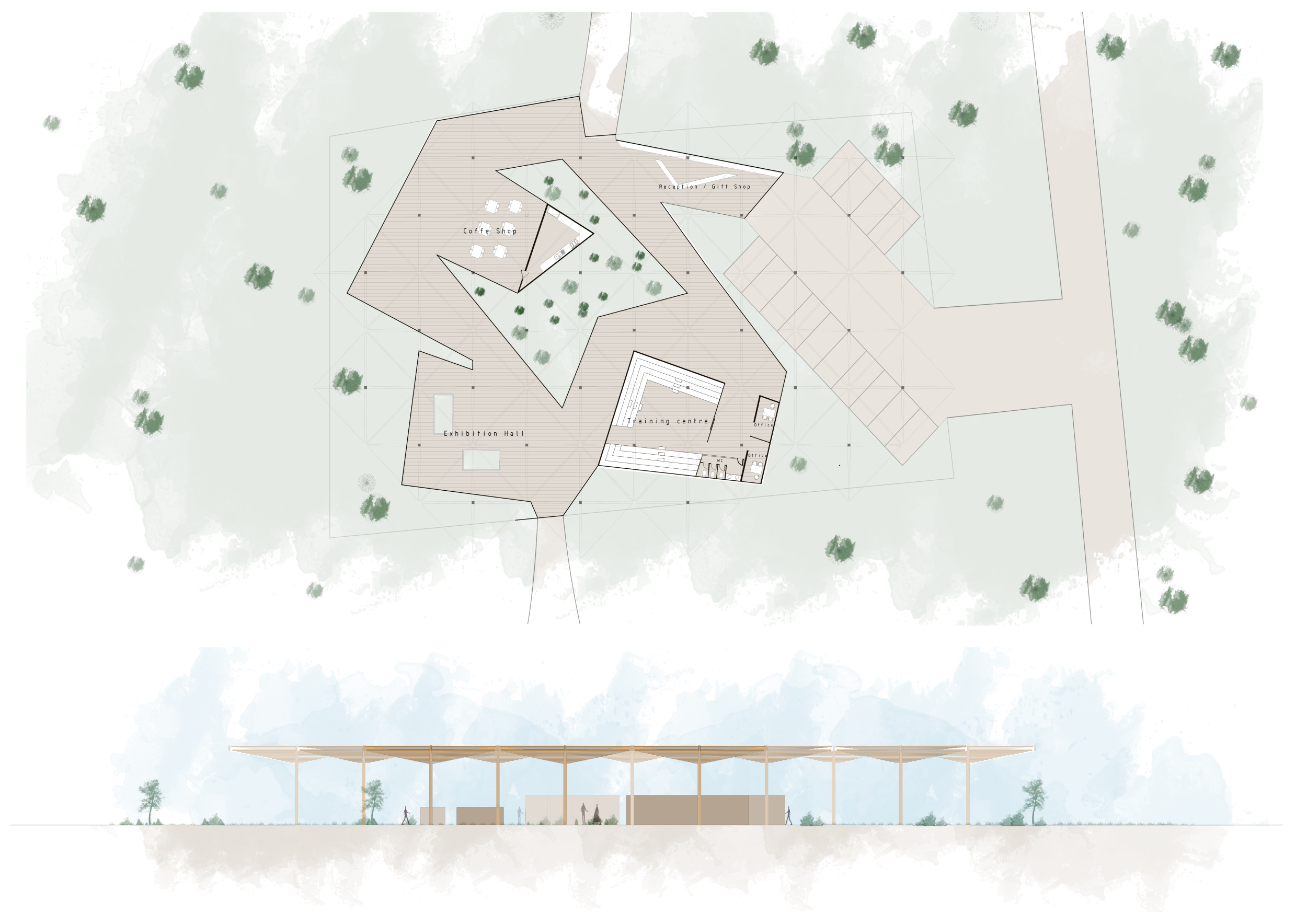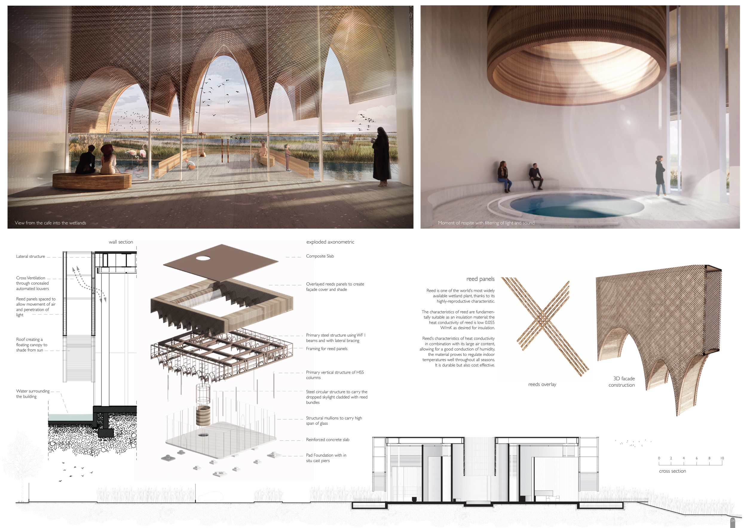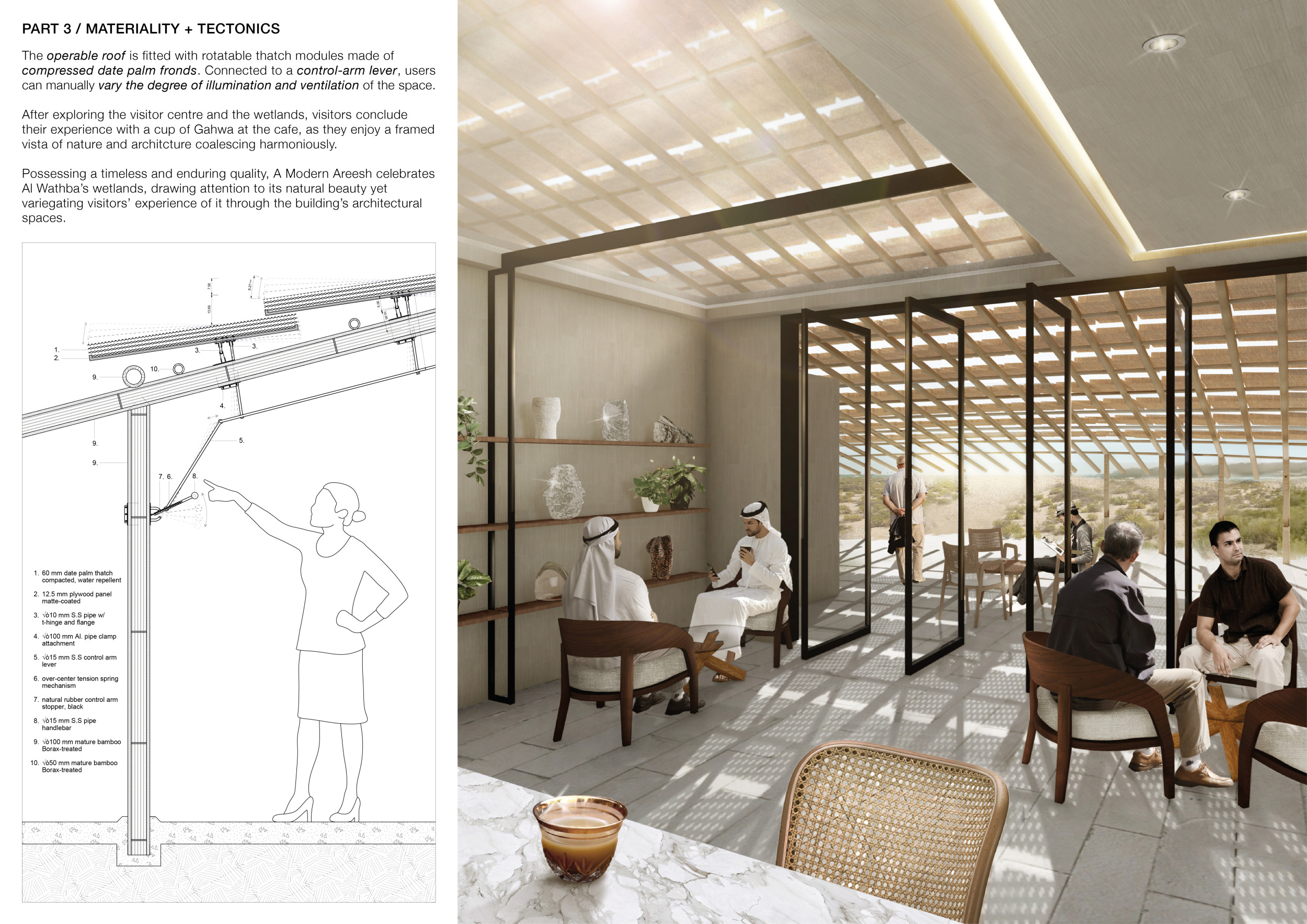 Competition participants were tasked with submitting concepts for a new visitor center, designed in balance with Al Wathba’s unique natural environment. The visitor center is to be programmed with facilities including an information center, cafe, terrace, souvenir shop, display area for specimens, training center, toilets, and a car park.